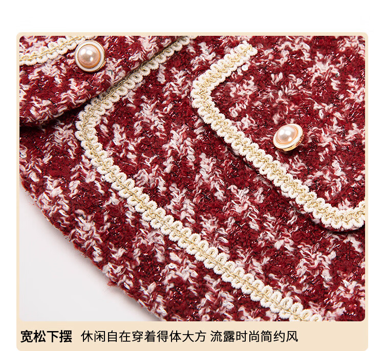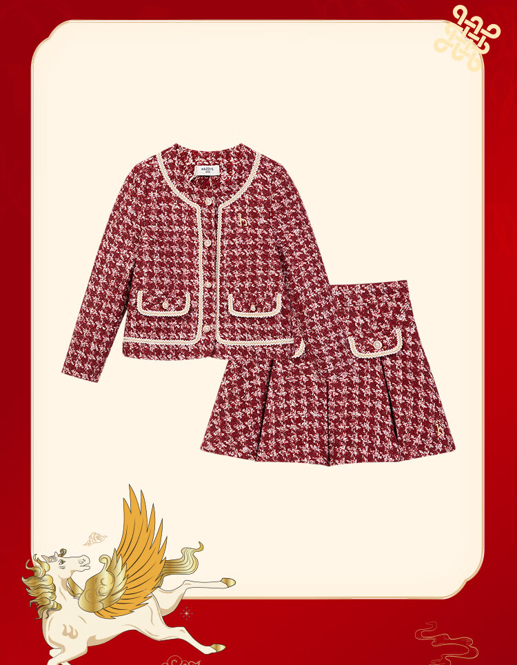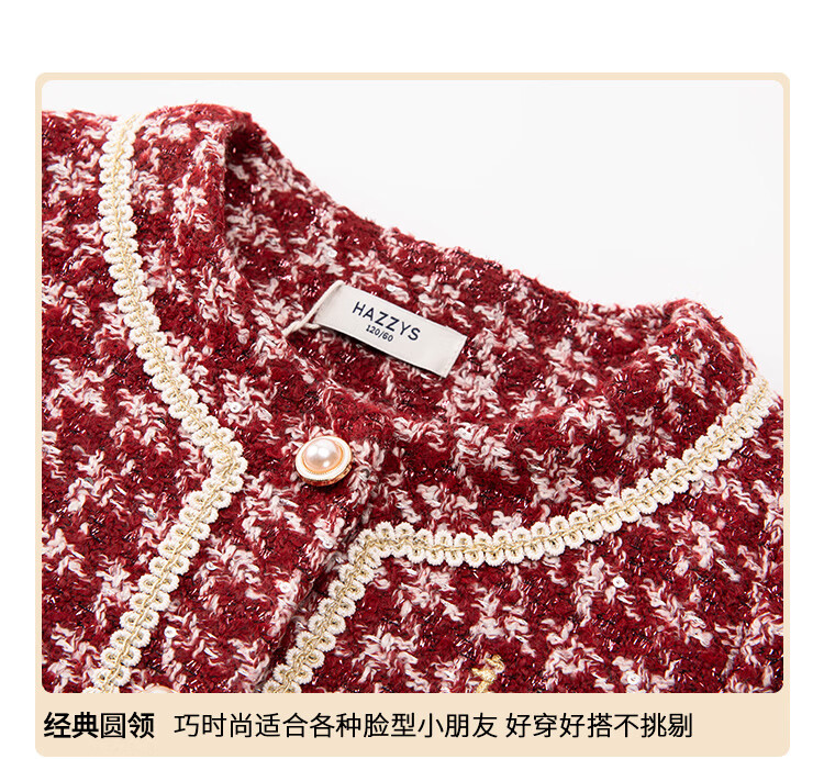 哈吉斯(HAZZYS)童装女童套裙2026春新年优雅小香风舒适套裙两件套 勃艮第酒红 145