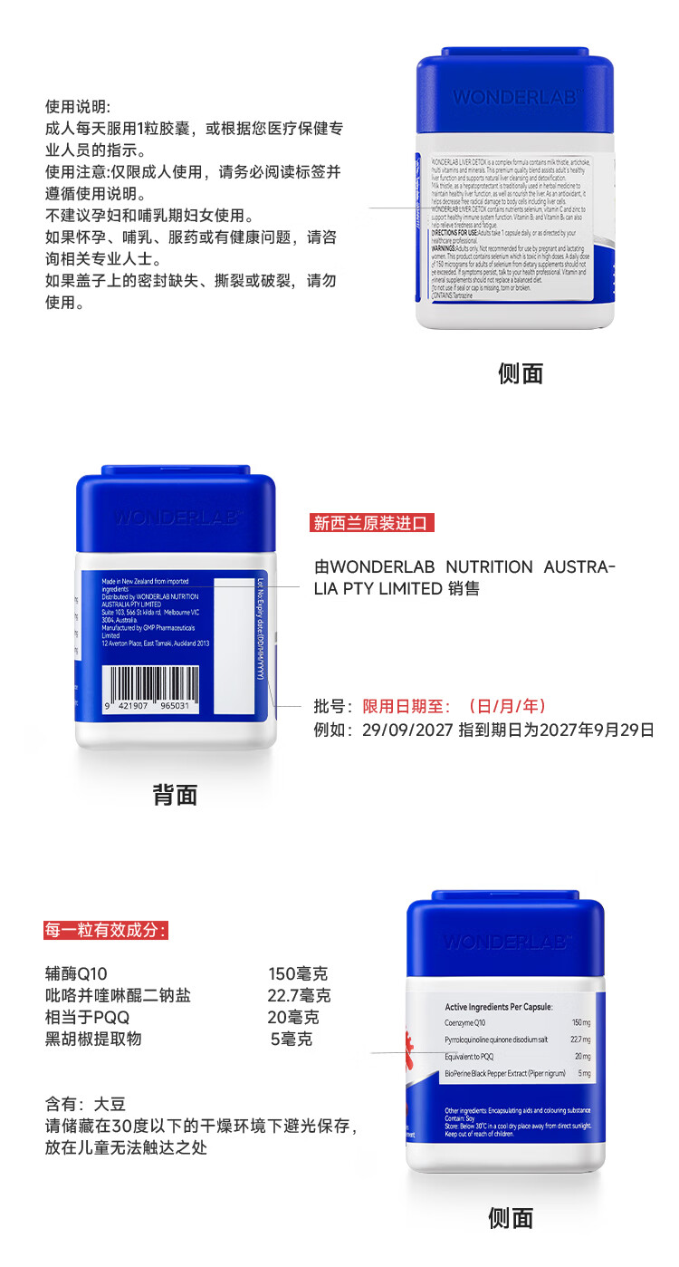 WONDERLAB辅酶q10胶囊 备孕保护心脏心脑血管增强免疫力Q10辅酶150mg*60粒