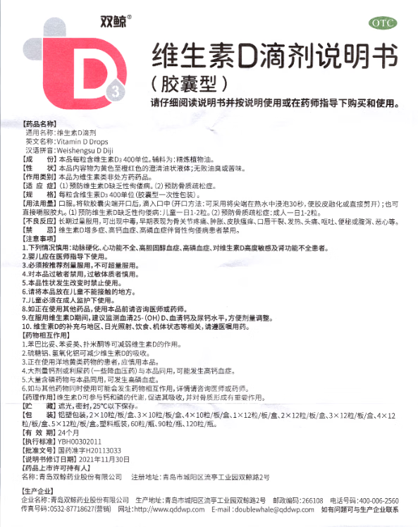[双鲸]维生素D滴剂 400IU*30粒 5盒装 用于预防和治疗维生素D缺乏症,如佝偻病 27年7月过期