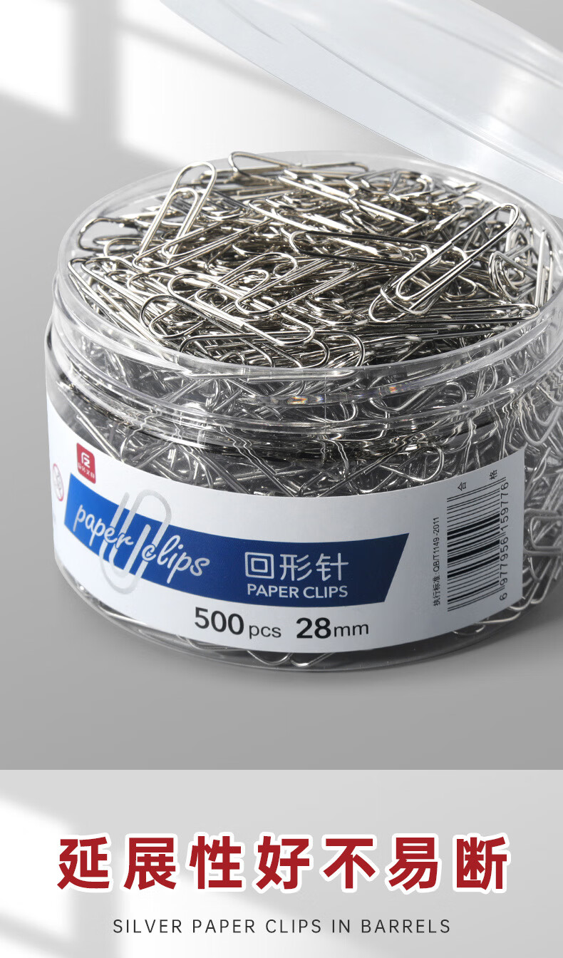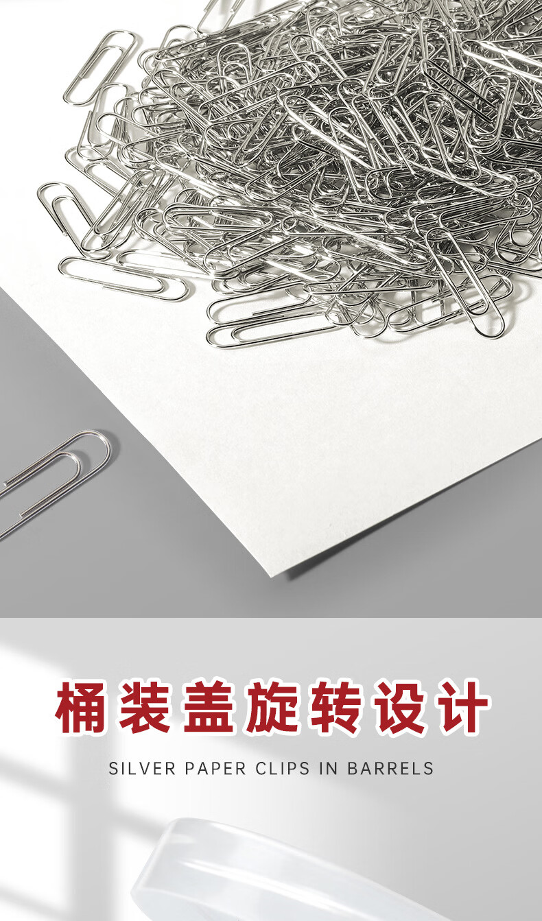 反转银色回形针办公用品曲别针大号文件书签回型针收纳盒文具不锈 银色回形针【500枚/桶】
