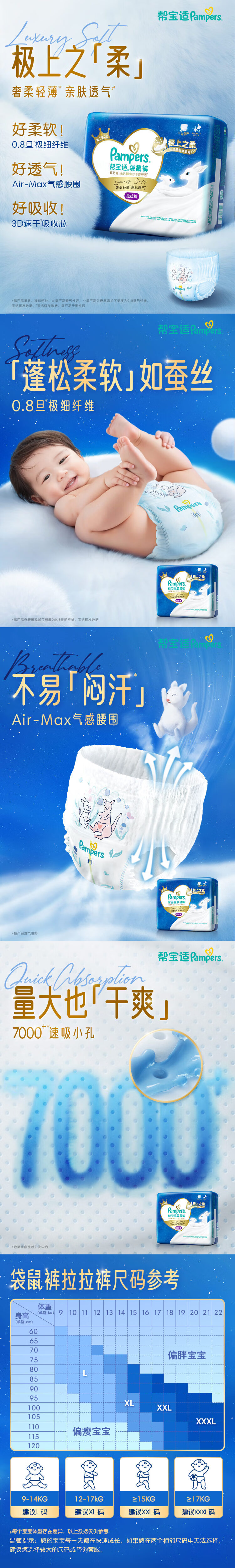帮宝适袋鼠裤拉拉裤XL码25片(12-17kg)加大码尿裤尿不湿