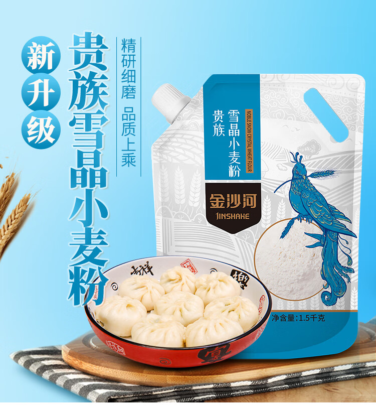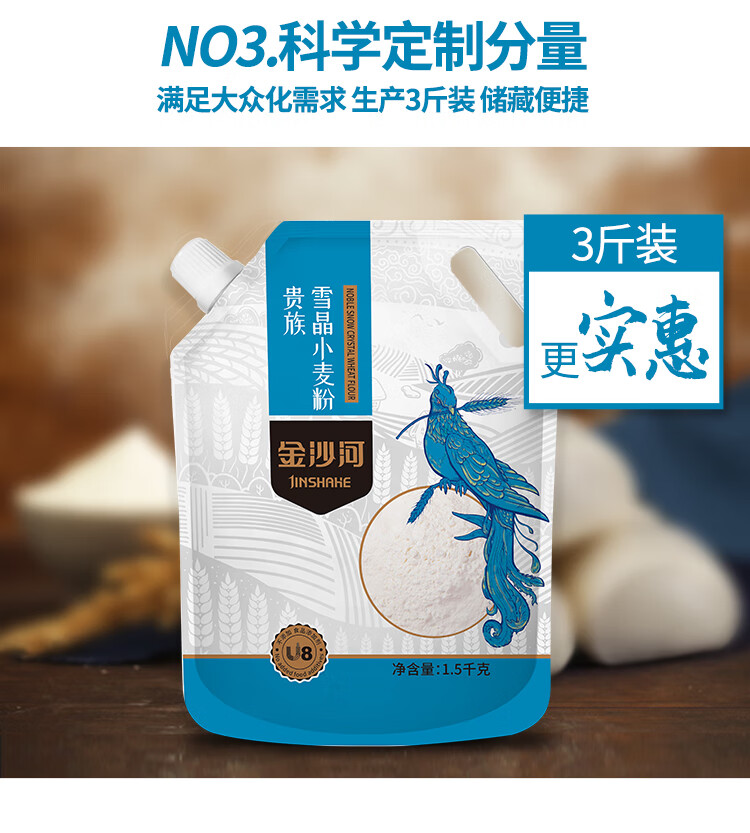 金沙河面粉小包装 贵族雪晶小麦粉3斤 家用中筋面粉