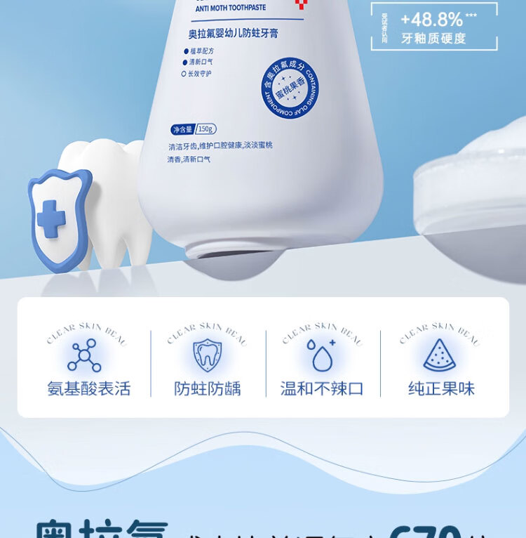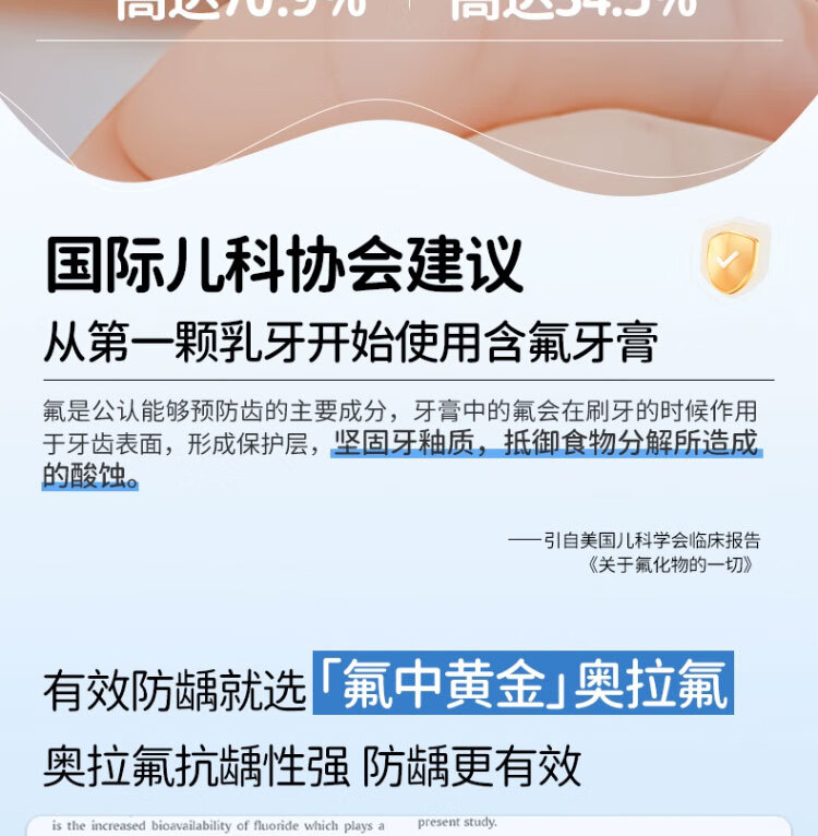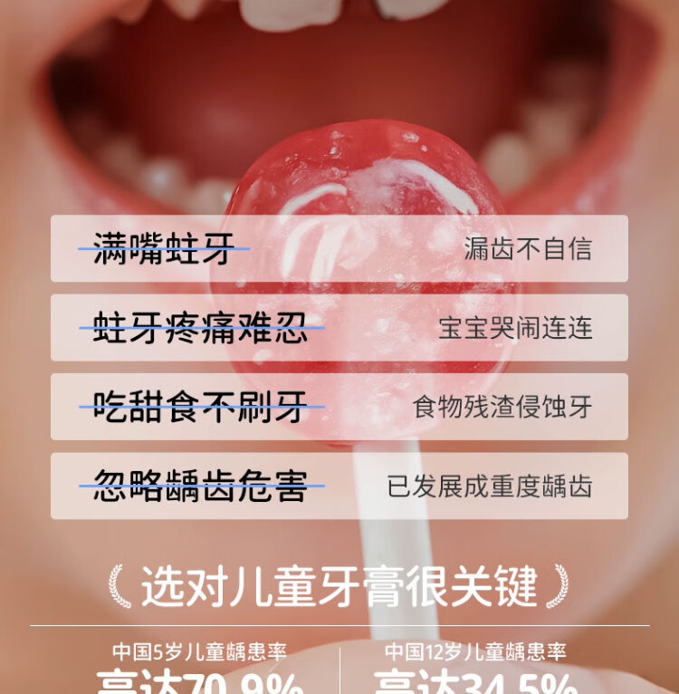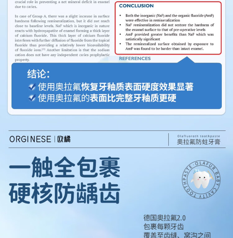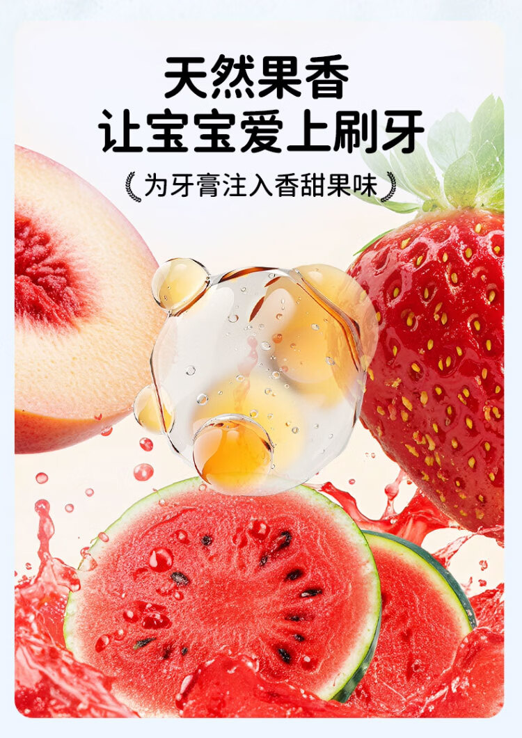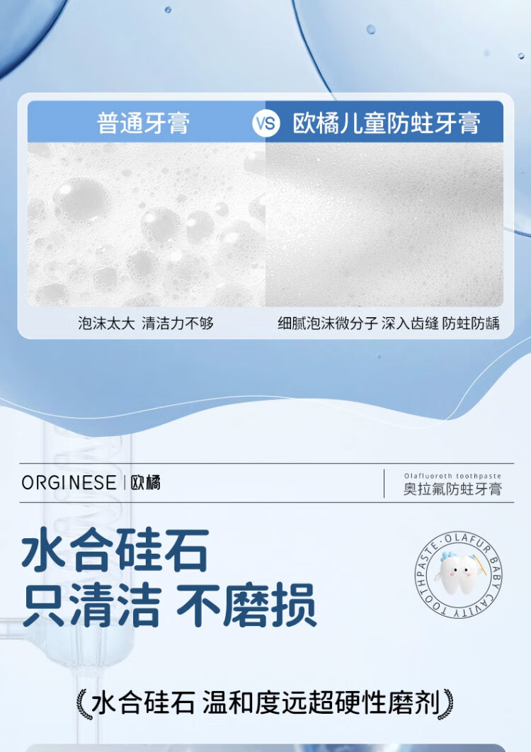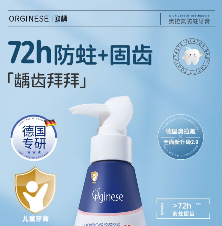 ORGINESE儿童牙膏3-6-12岁防蛀龋奥拉氟按压式西瓜蜜桃味含氟宝宝固齿2瓶