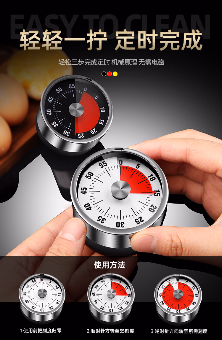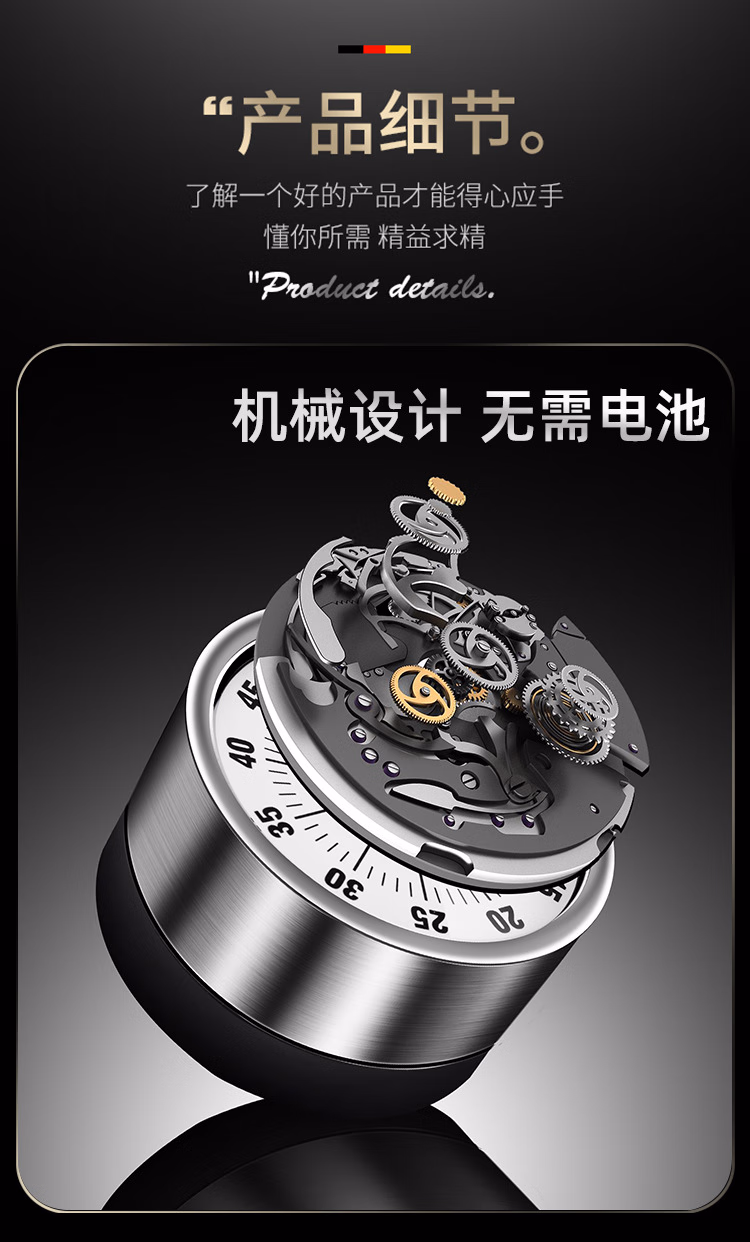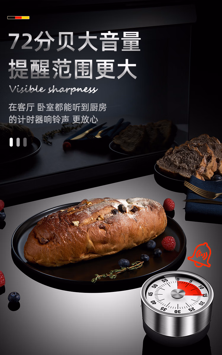 Jidaocook德国 厨房定时器磁吸闹钟 烹饪提醒器学生计时器定时机械钟神器 【优雅白】磁吸机械定时器