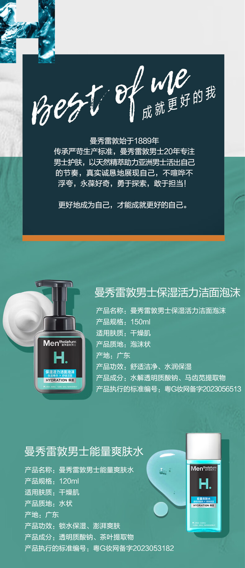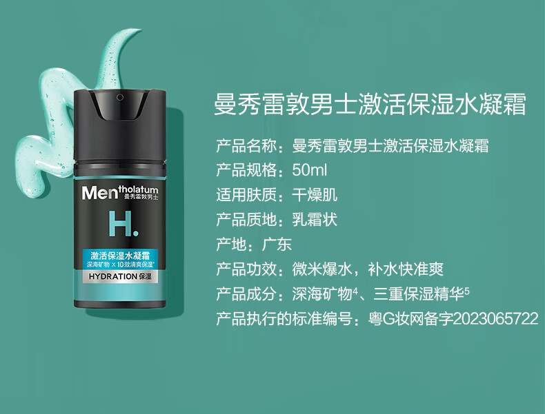 曼秀雷敦男士【张艺兴同款】冬季补水保湿水凝霜50ml二合一乳液擦脸油面霜