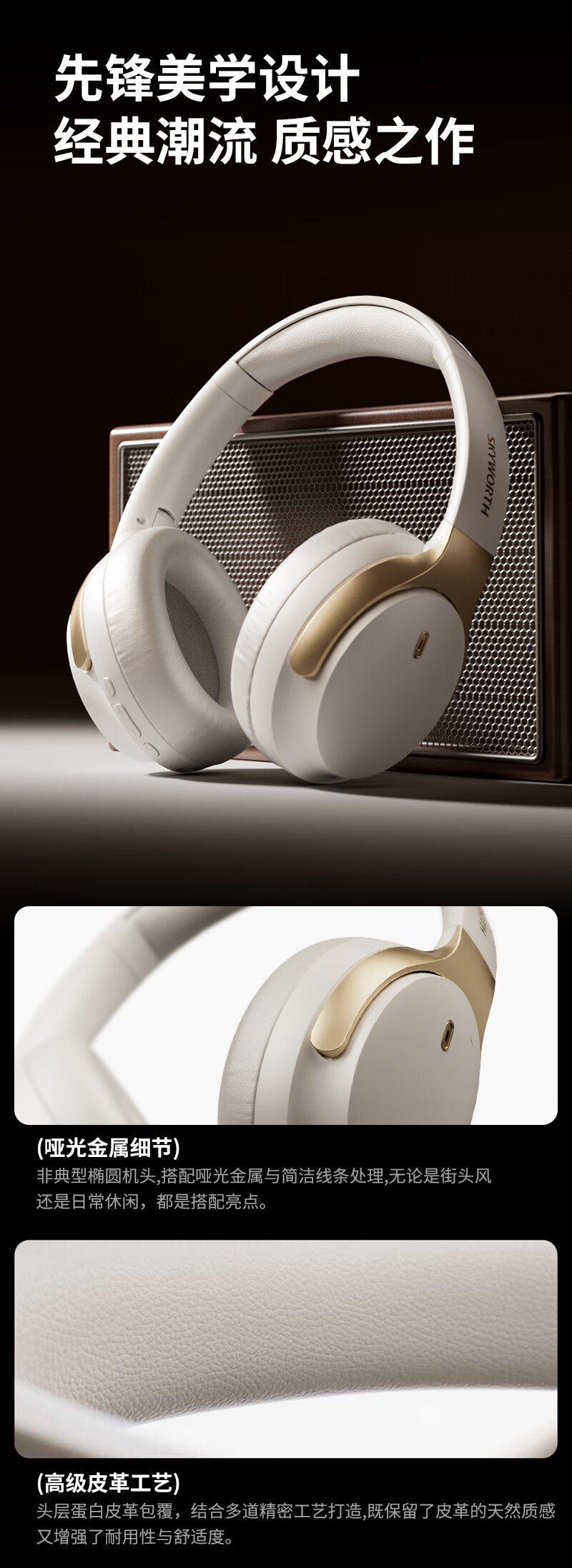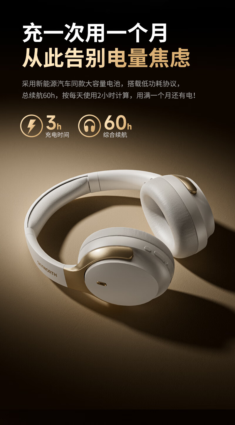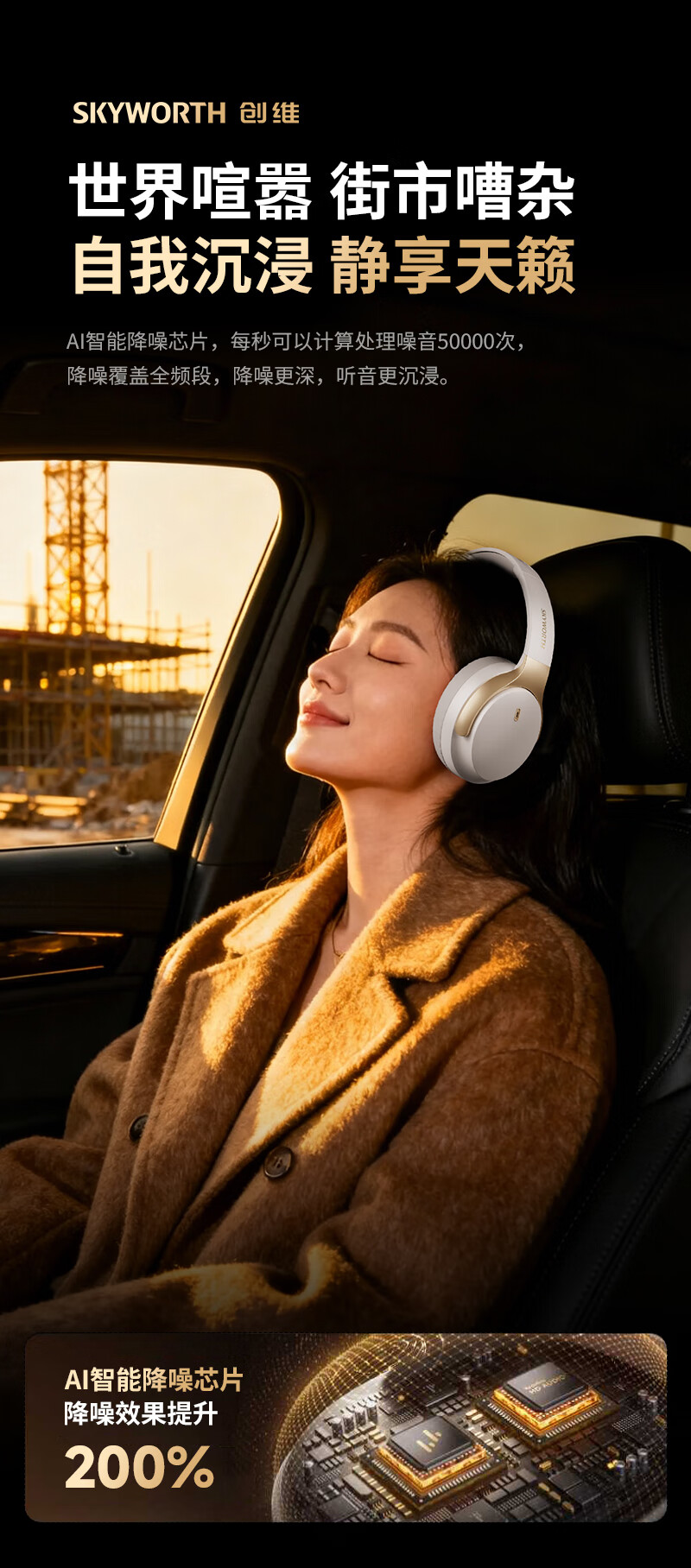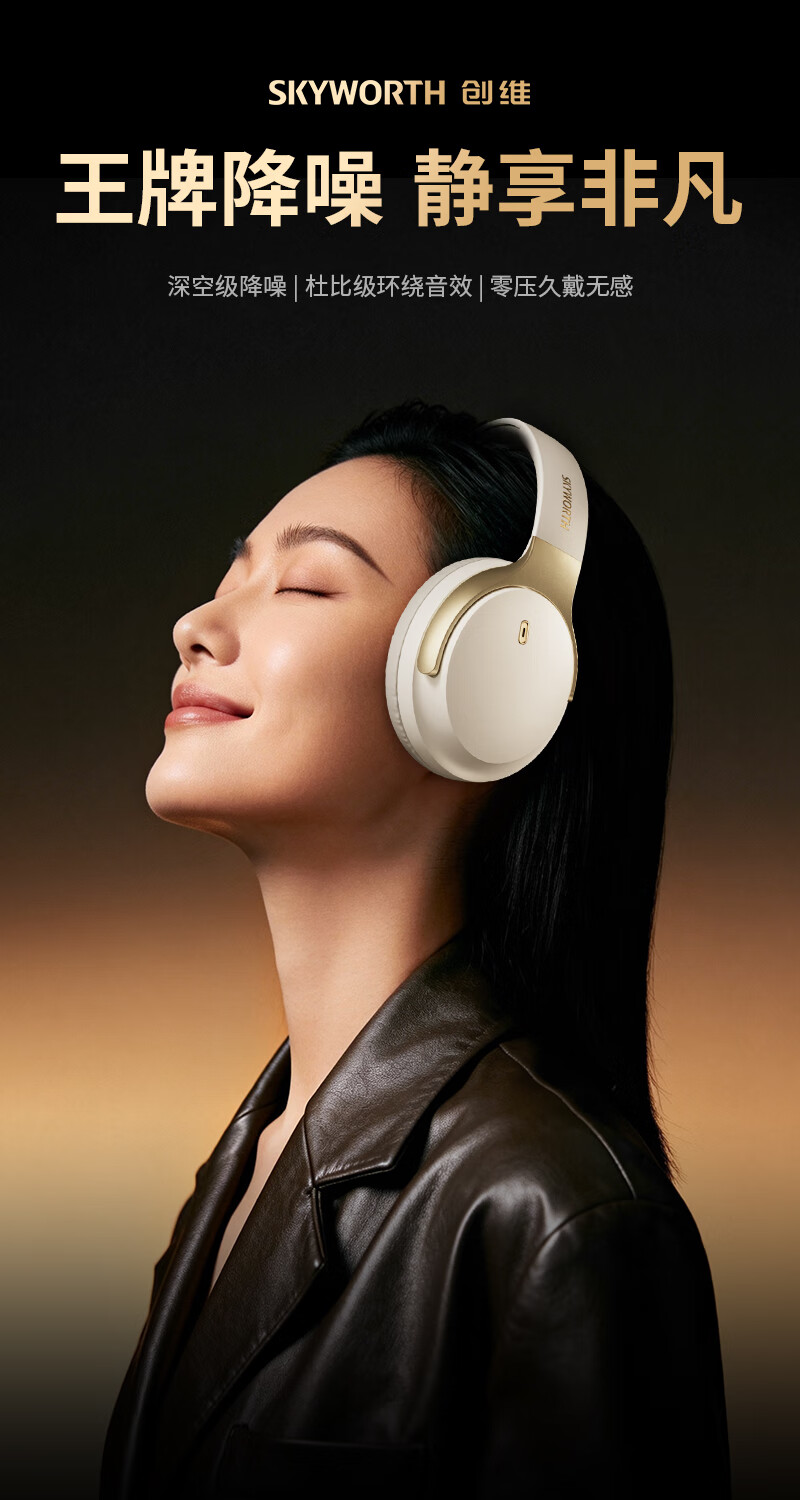 创维(Skyworth)H1 Free 白色 蓝牙耳机头戴式主动降噪2025新款无线有线游戏音乐耳机不伤耳朵睡觉隔音新年礼物