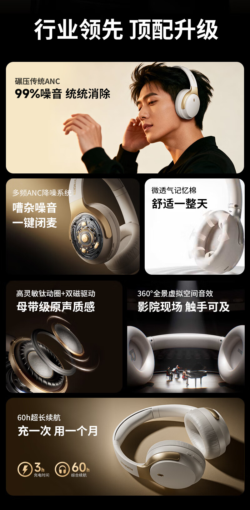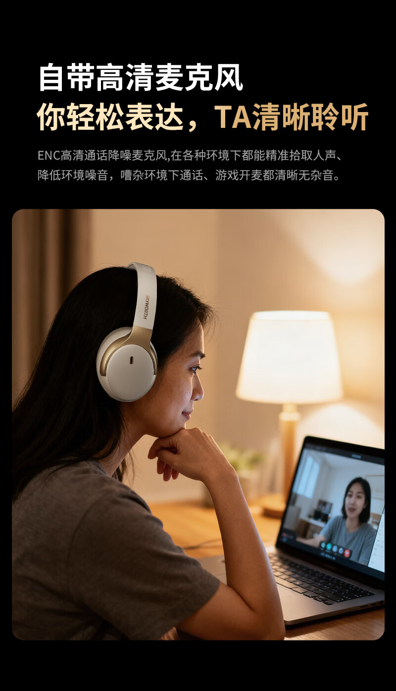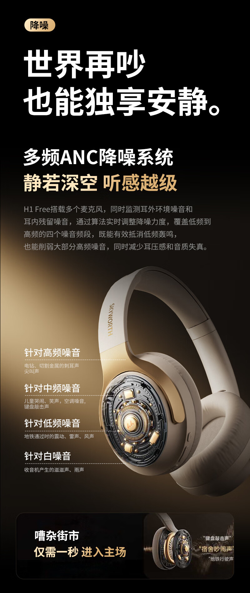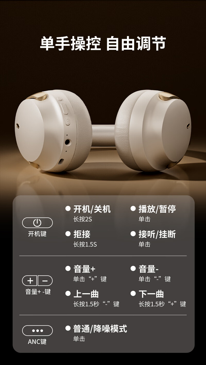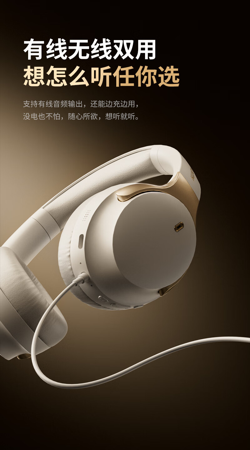 创维(Skyworth)H1 Free 白色 蓝牙耳机头戴式主动降噪2025新款无线有线游戏音乐耳机不伤耳朵睡觉隔音新年礼物