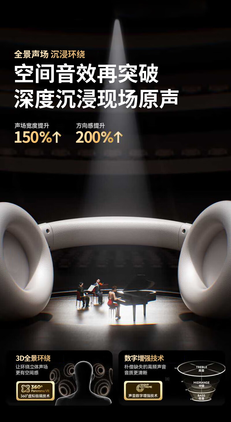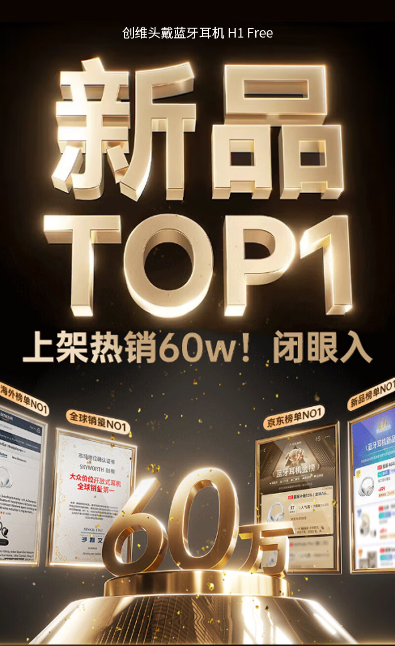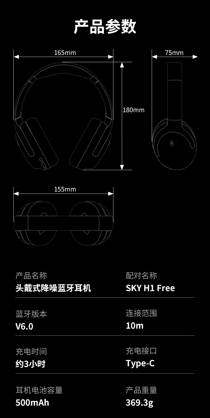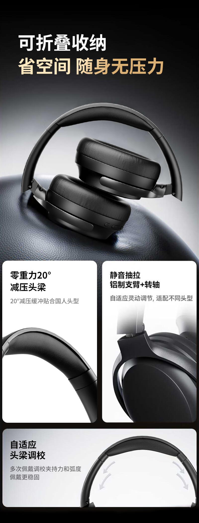 创维(Skyworth)H1 Free 黑色 蓝牙耳机头戴式主动降噪2025新款无线有线游戏音乐耳机不伤耳朵睡觉隔音新年礼物