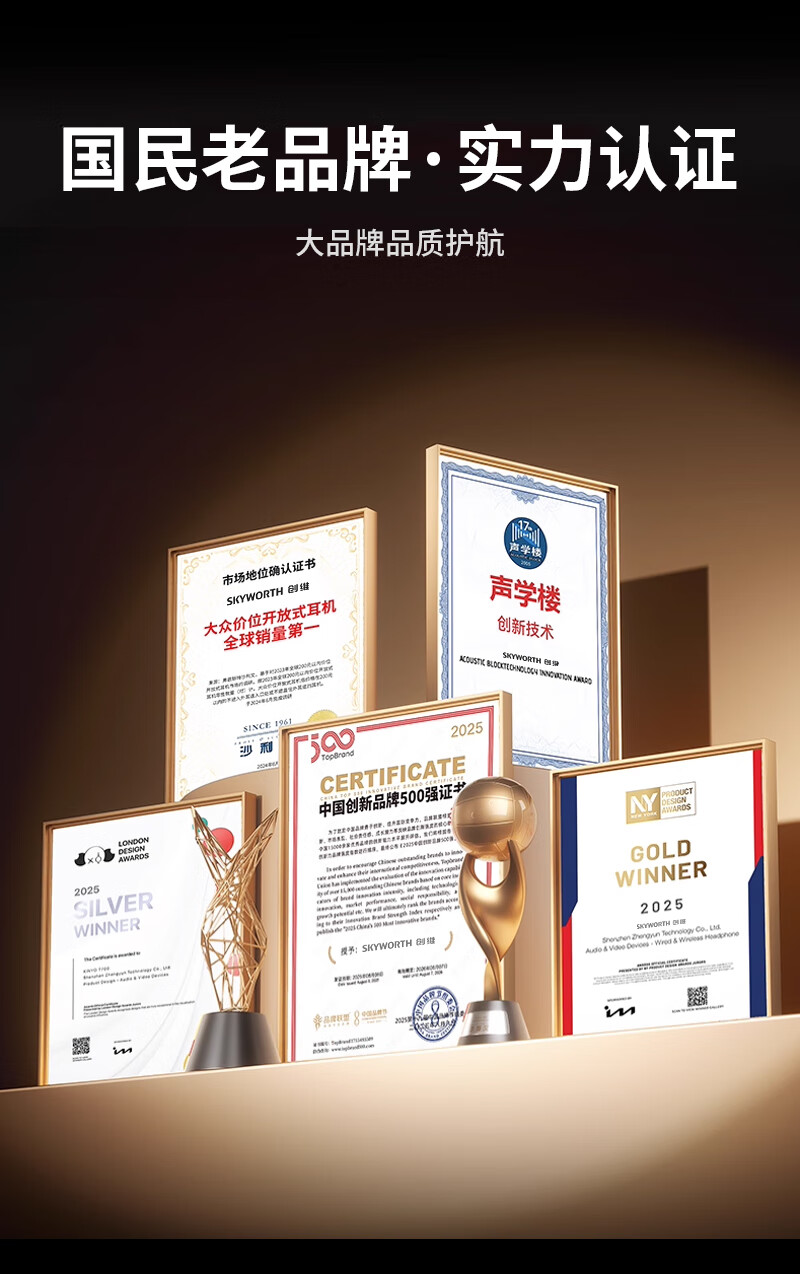 创维(Skyworth)D2 OpenFit 曜石黑 蓝牙耳机挂耳式骨传导开放式不入耳运动耳机超长续航降噪高音质降噪久戴不痛