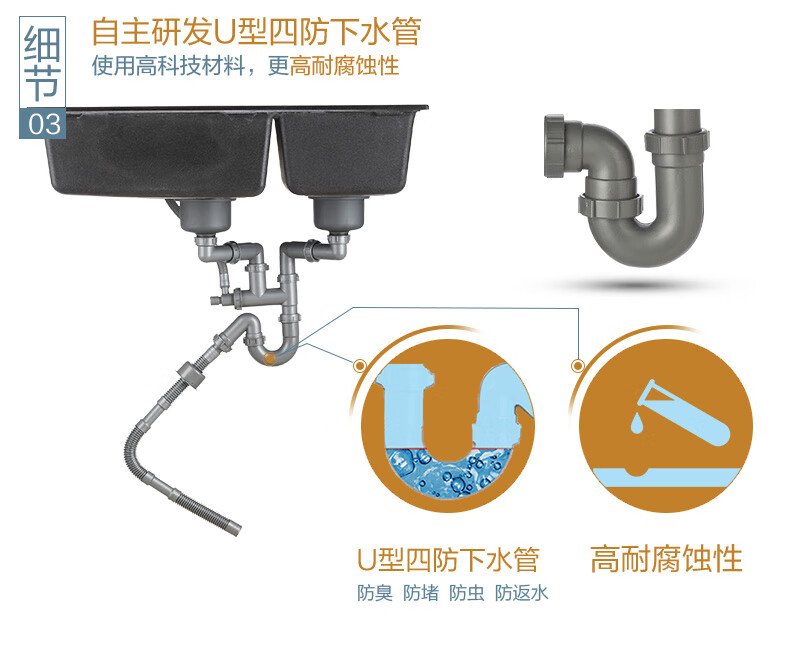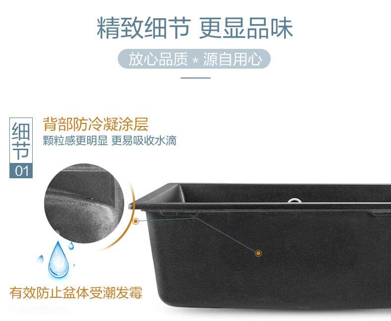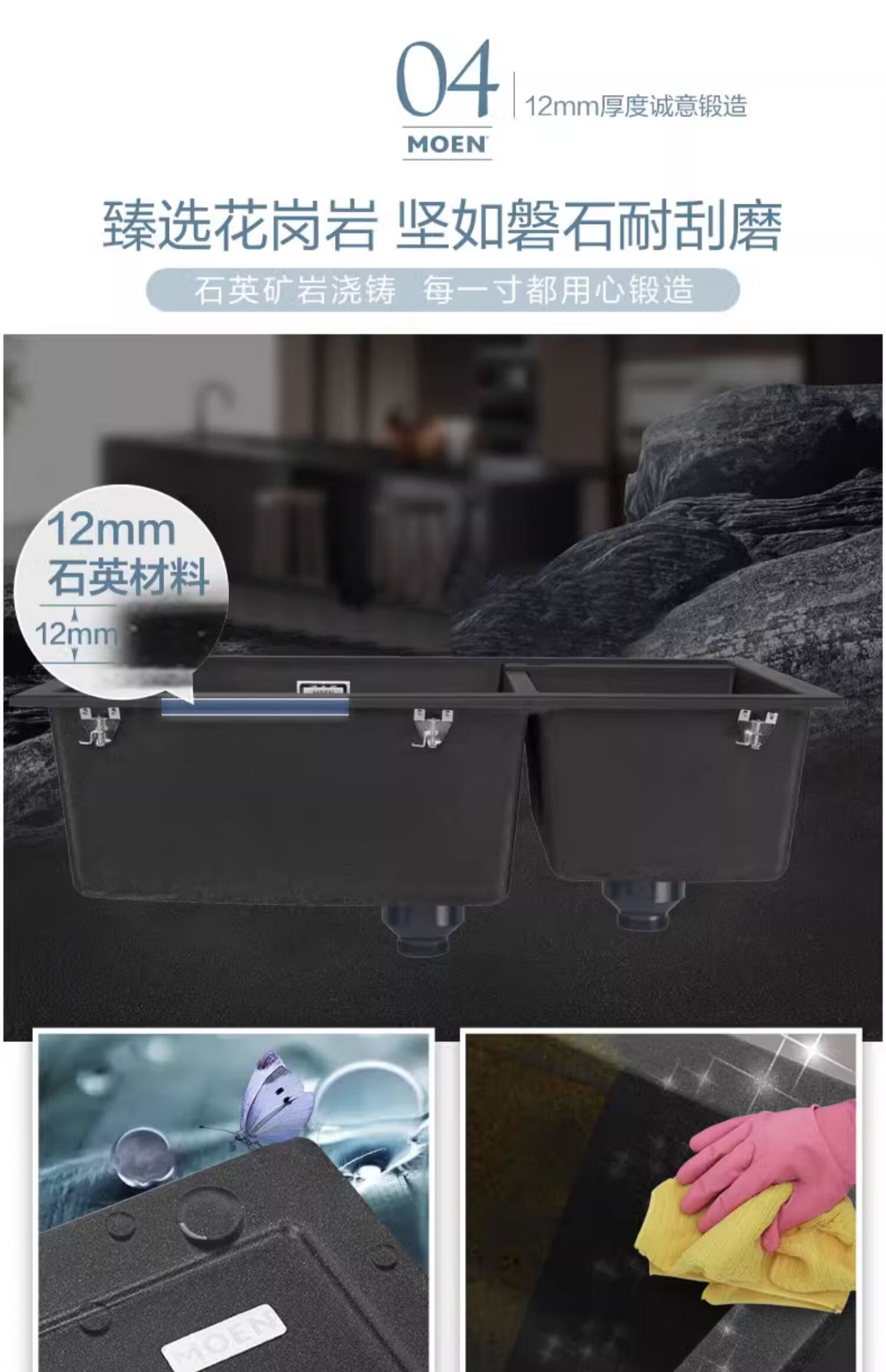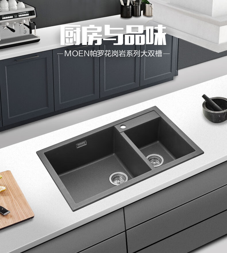 摩恩(MOEN)厨房水槽水池盆石英石石槽枪灰黑色大双水槽洗菜 帕罗815*500*231 花岗岩大小槽(灰色)