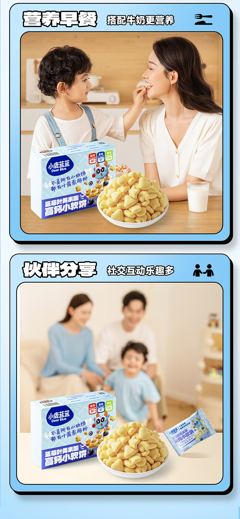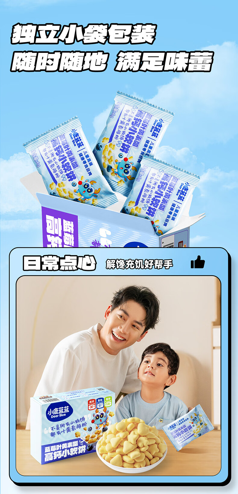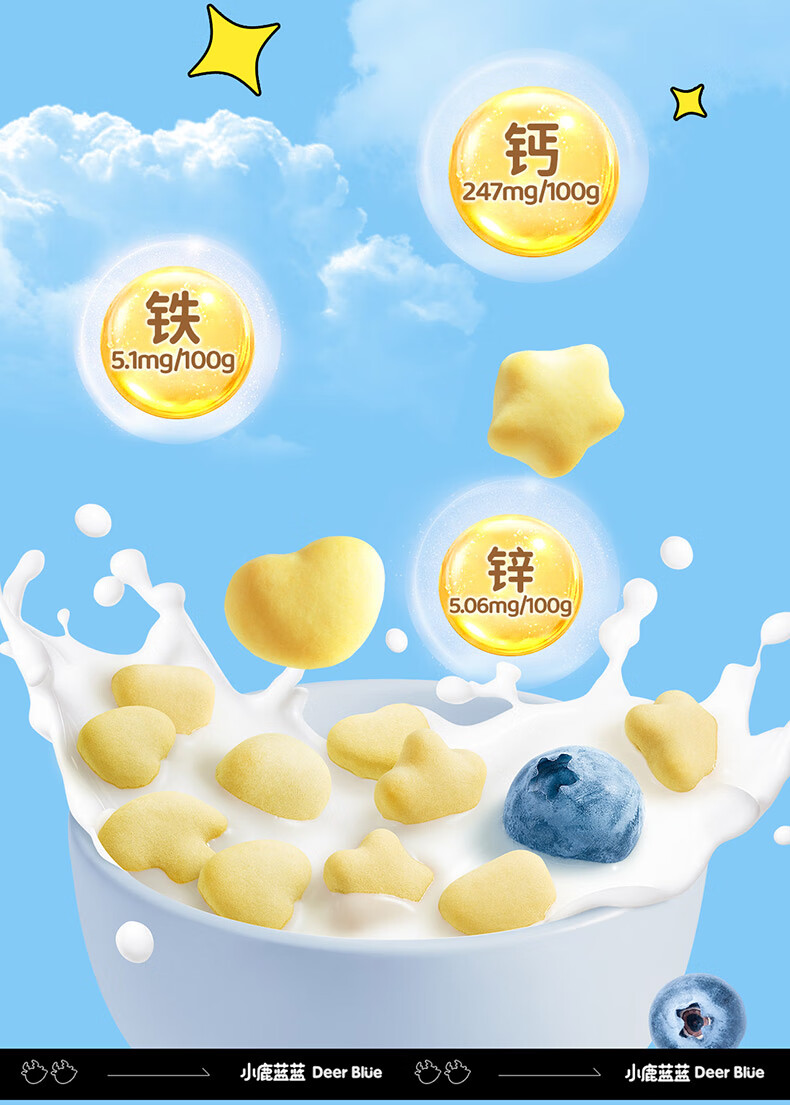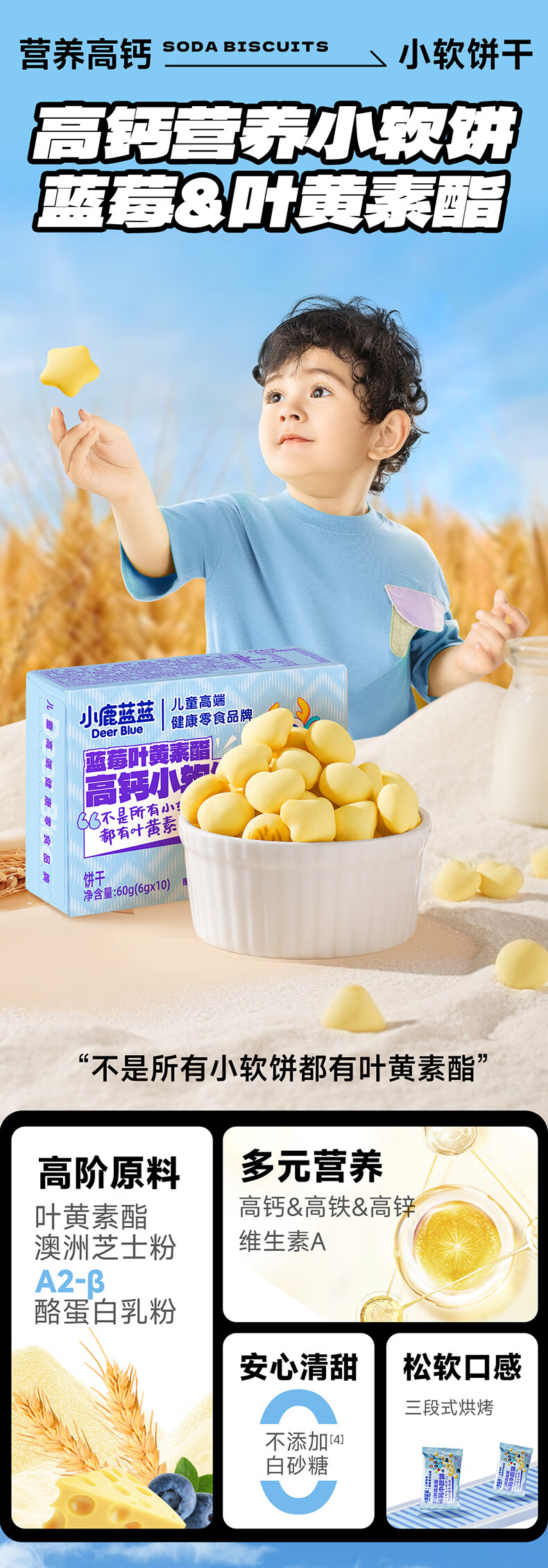小鹿蓝蓝蓝莓叶黄素酯高钙小软饼蓝莓味60g儿童饼干宝宝零食糕点零食