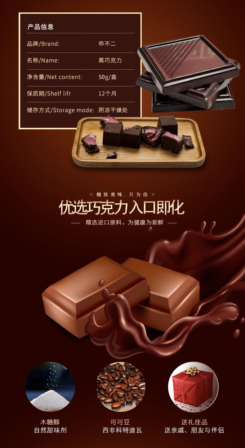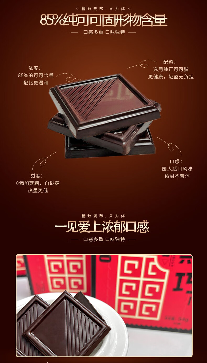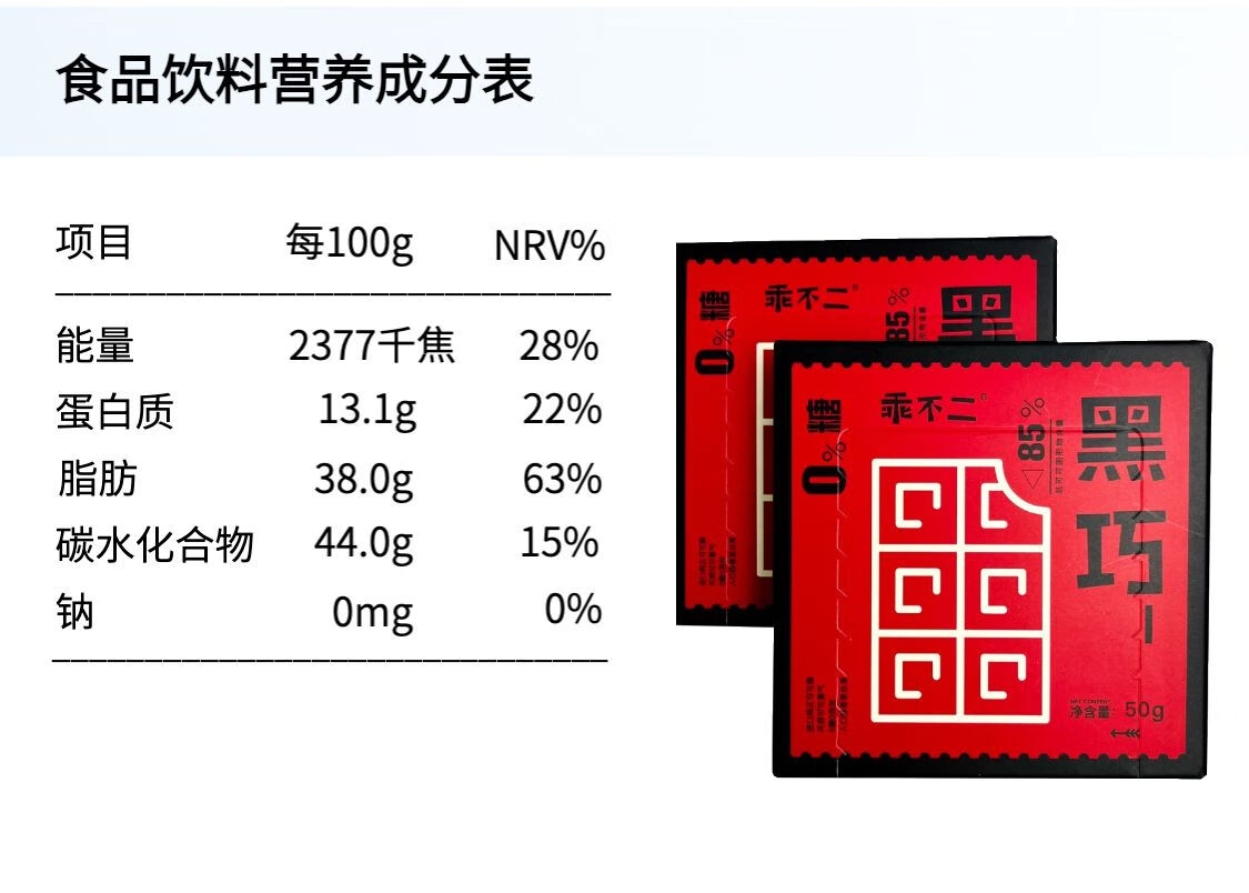 乖不二 85%黑巧克力 50g/盒 纯可可脂 0蔗糖 中老年青少年 年货新年礼物