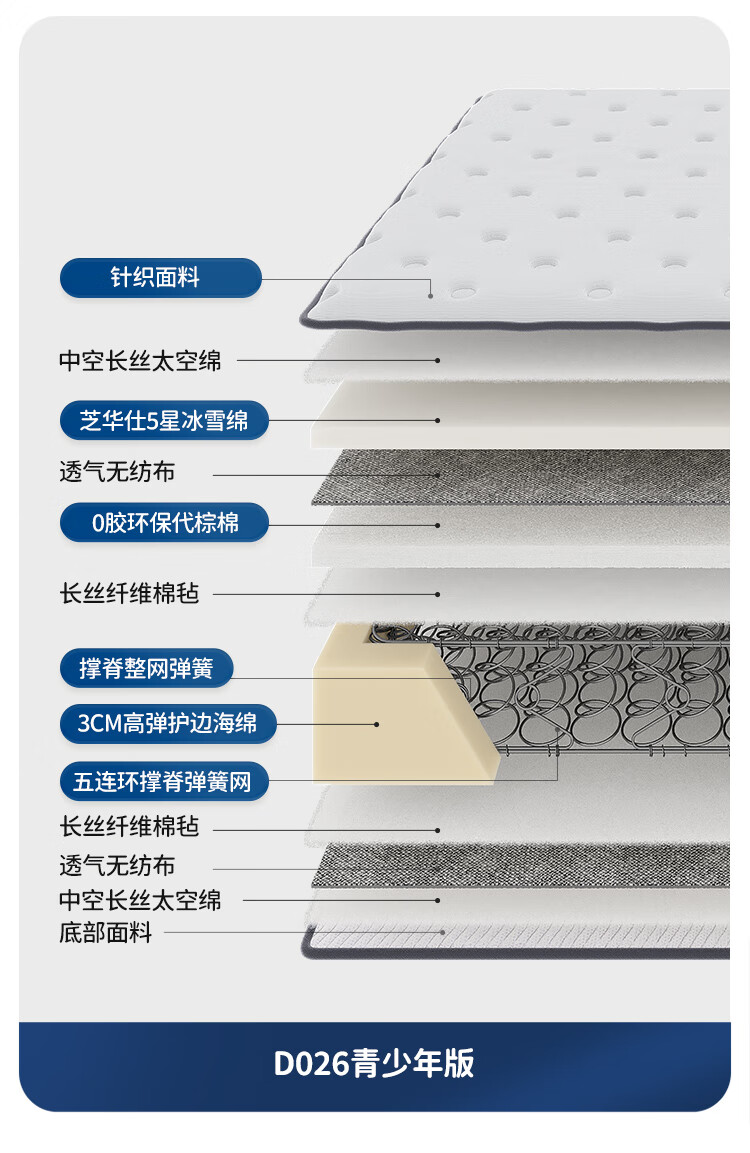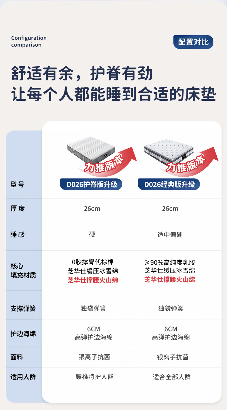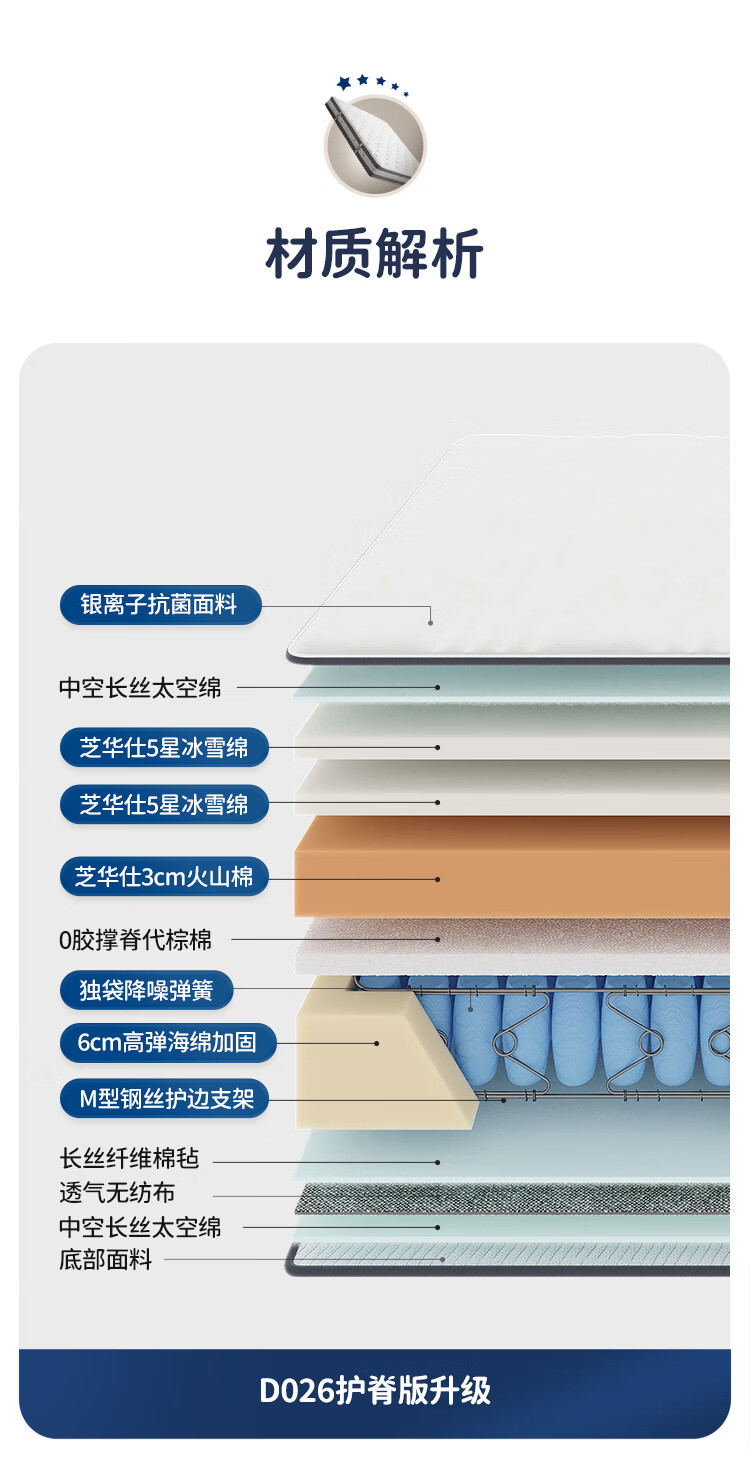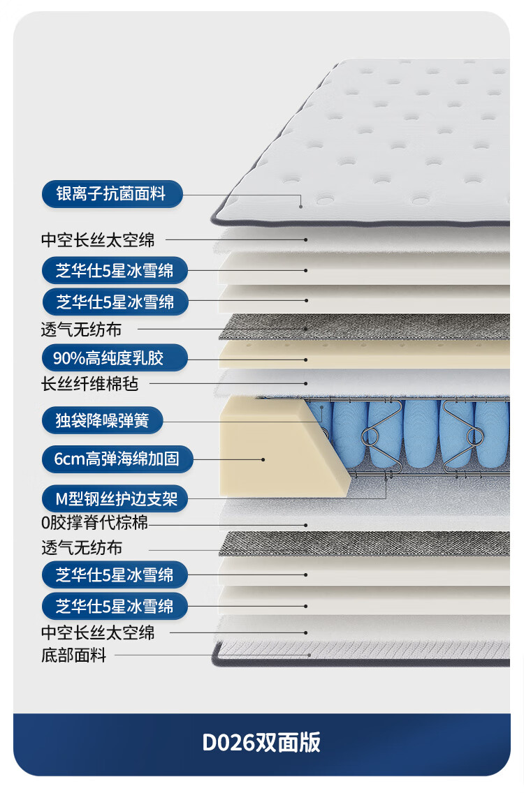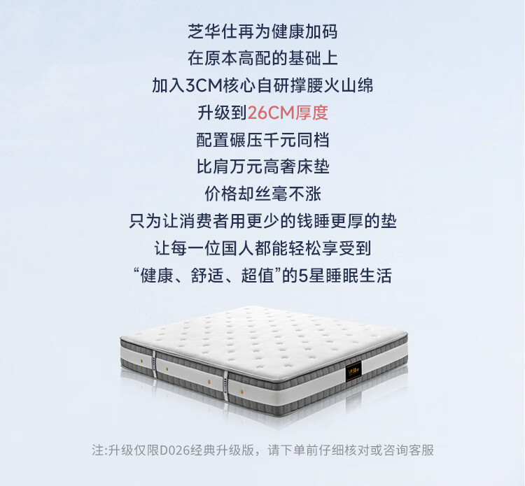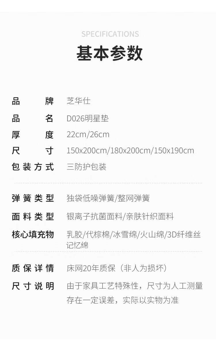 芝华仕床垫D026明星垫0胶撑脊代棕棉独袋弹簧席梦思家用1.8x2米睡感偏硬