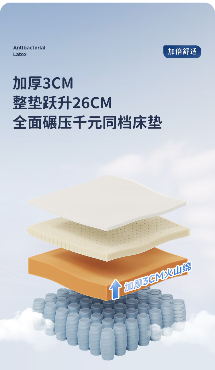 慕思(de RUCCI) 美脊 2cm乳胶Smart智慧弹簧 慕斯乳胶床垫 1.8*2米软硬适中