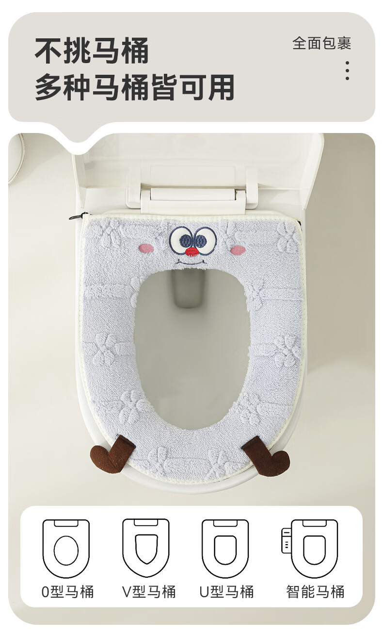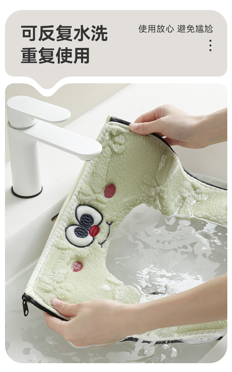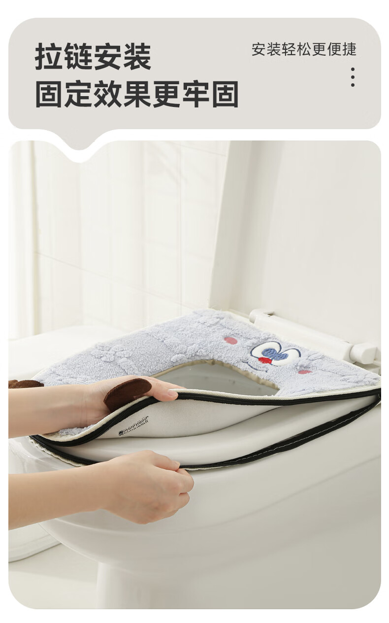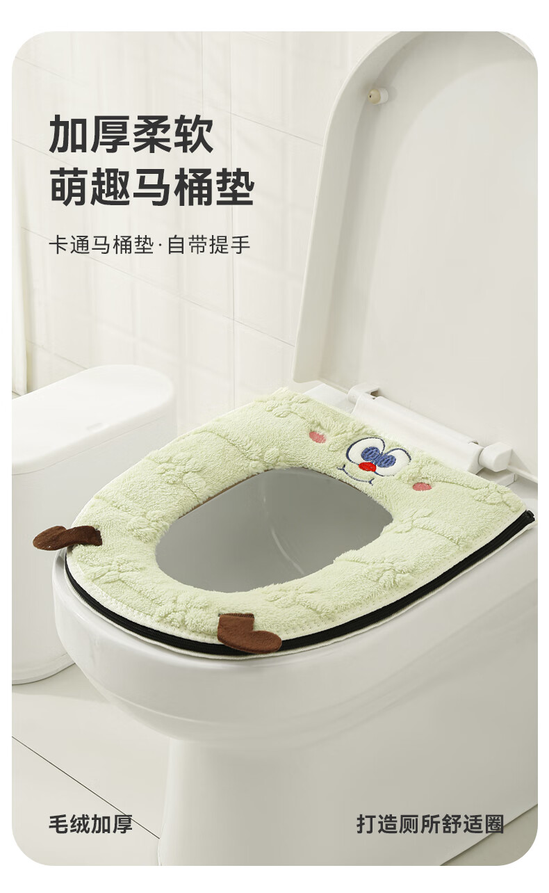 三利马桶垫秋冬季带提手加厚马桶坐垫家用毛绒保暖拉链款马桶圈垫坐垫