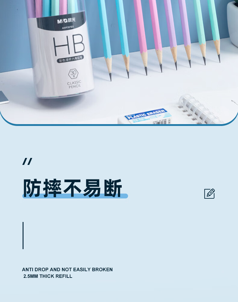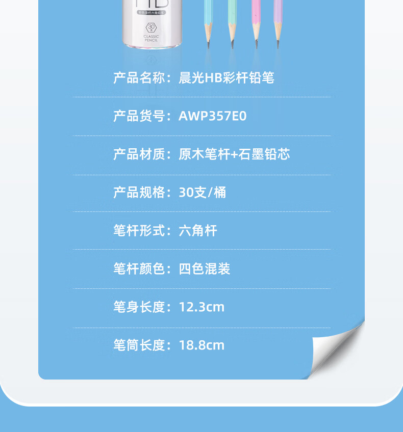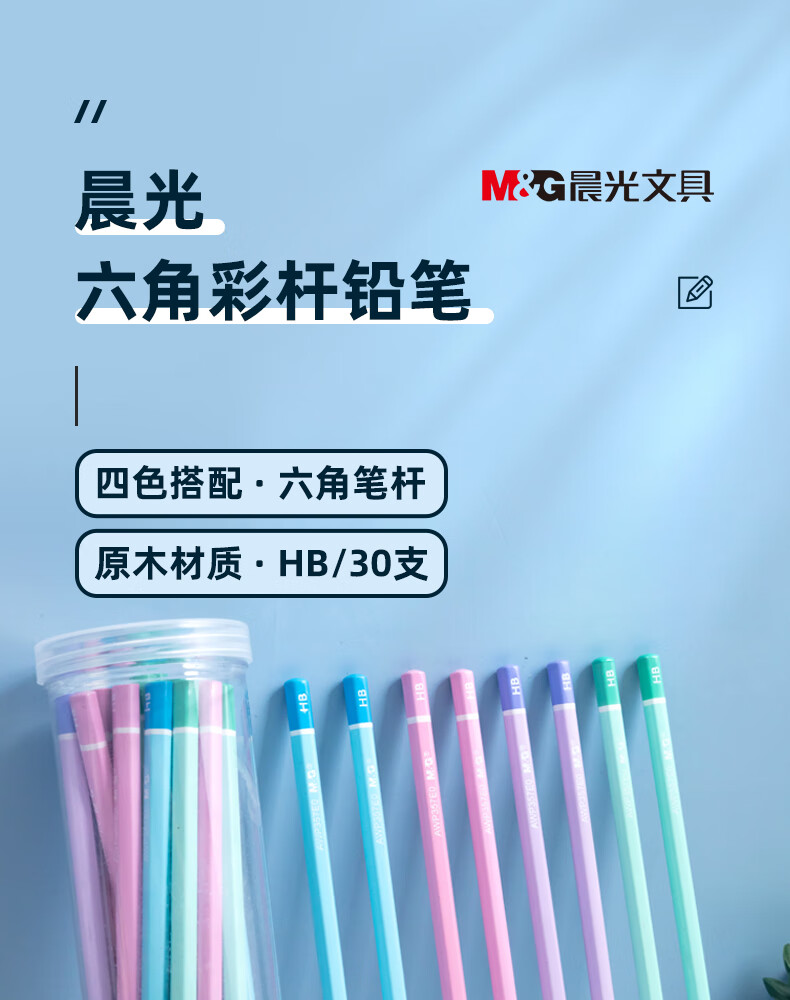 晨光(M&G)文具HB铅笔彩杆30支 六角木杆铅笔 学生书写美术素描绘图木质铅笔AWP357E0