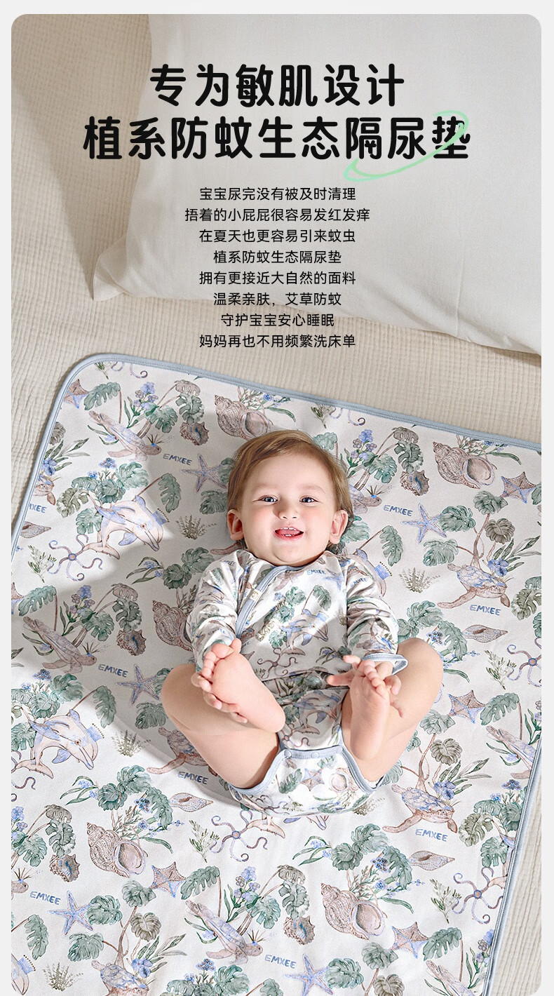嫚熙(EMXEE)婴儿隔尿垫防水可洗宝宝防漏尿床垫儿童大尺寸床单 甜心兔70x90cm
