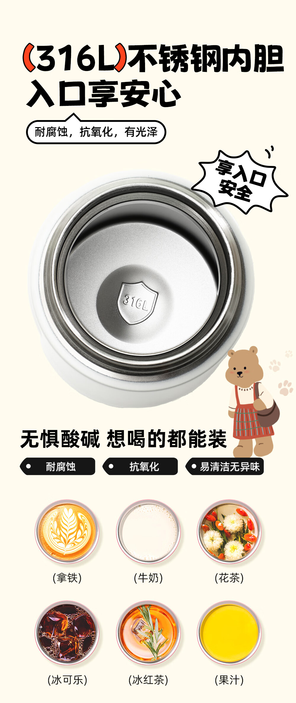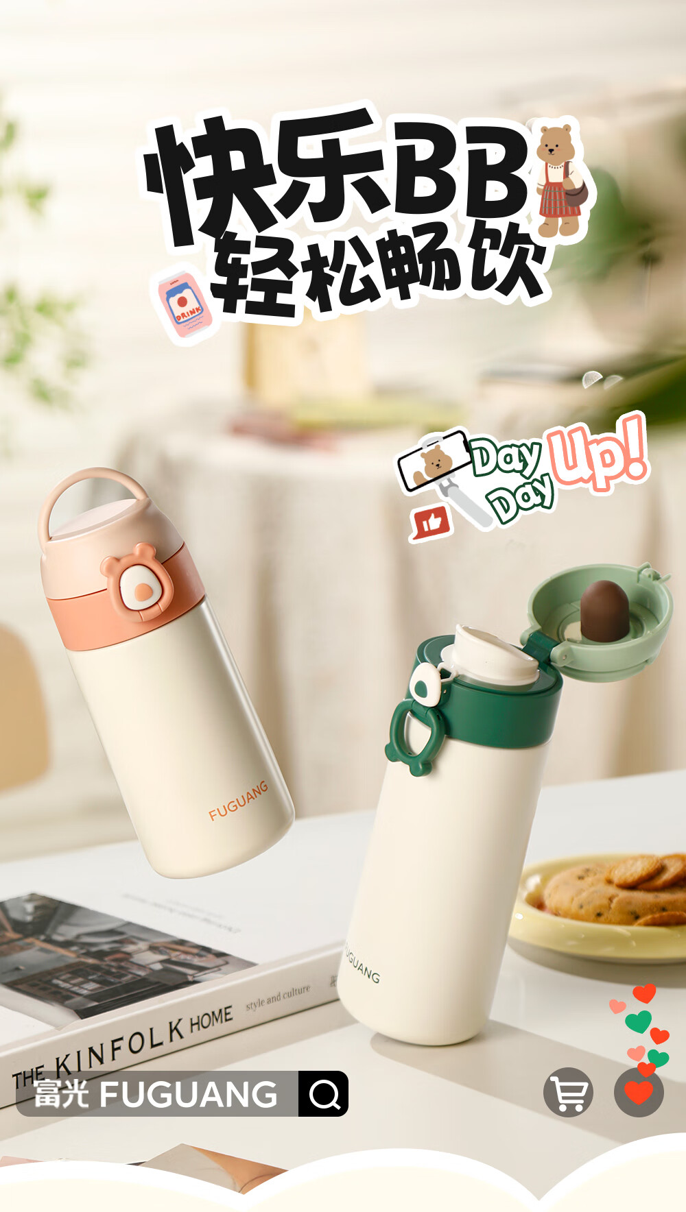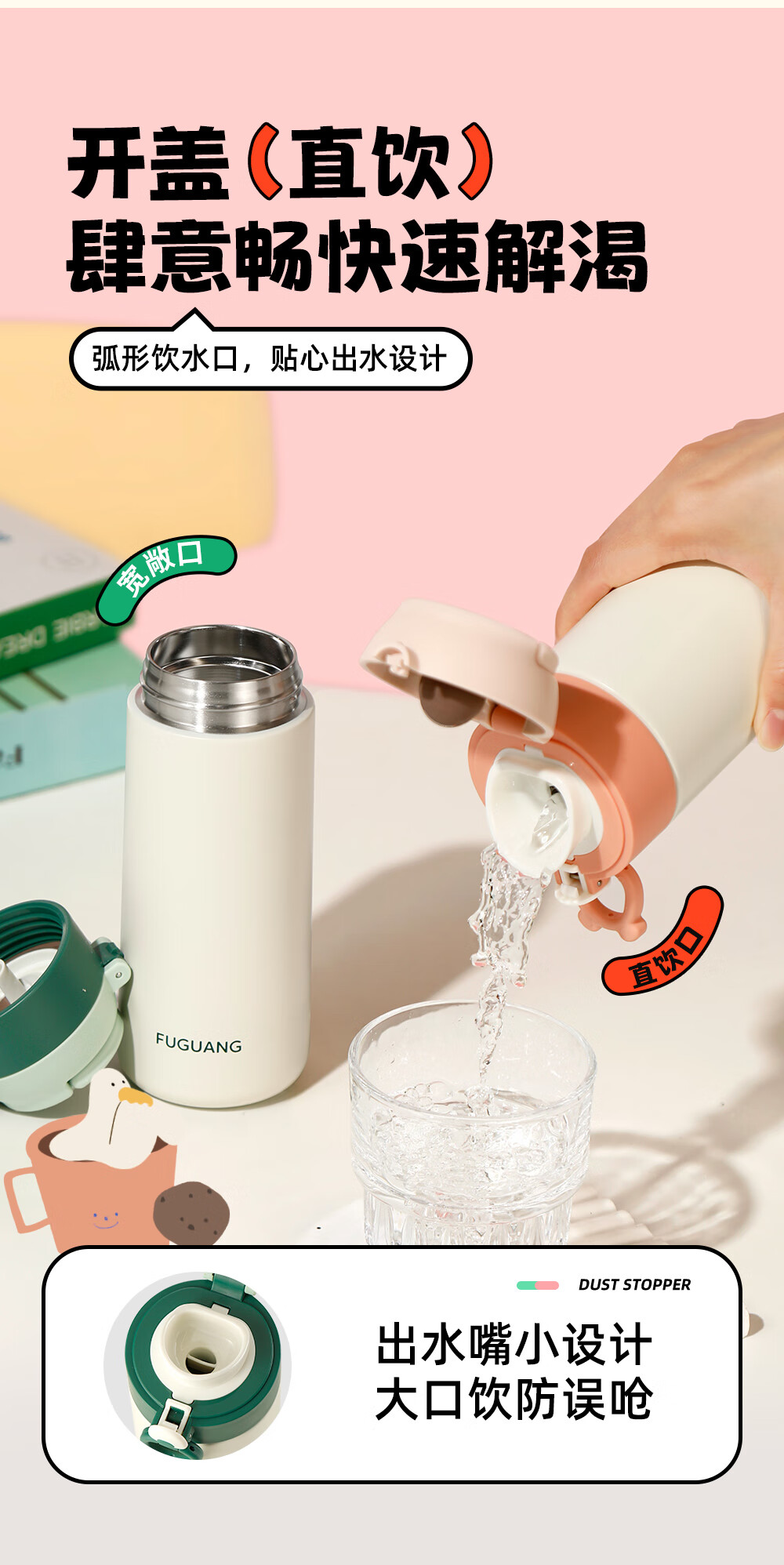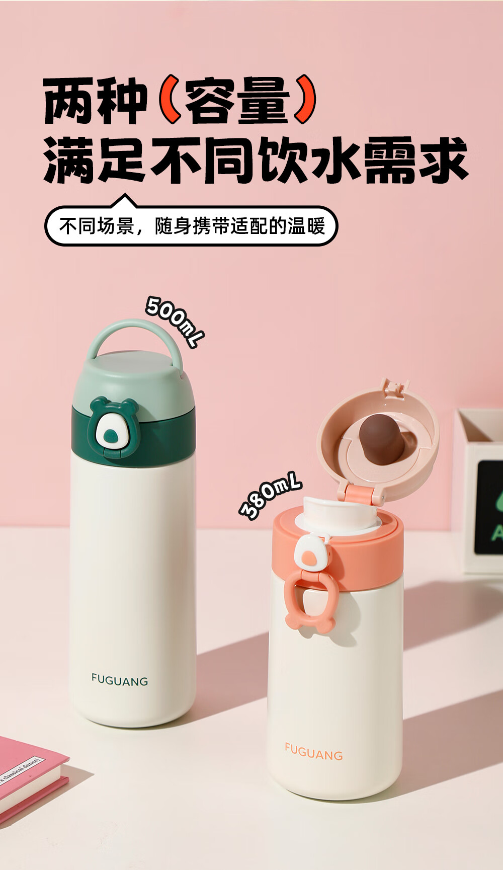 FGA富光儿童保温杯男女士大容量316不锈钢学生直饮水杯便携杯子-粉色