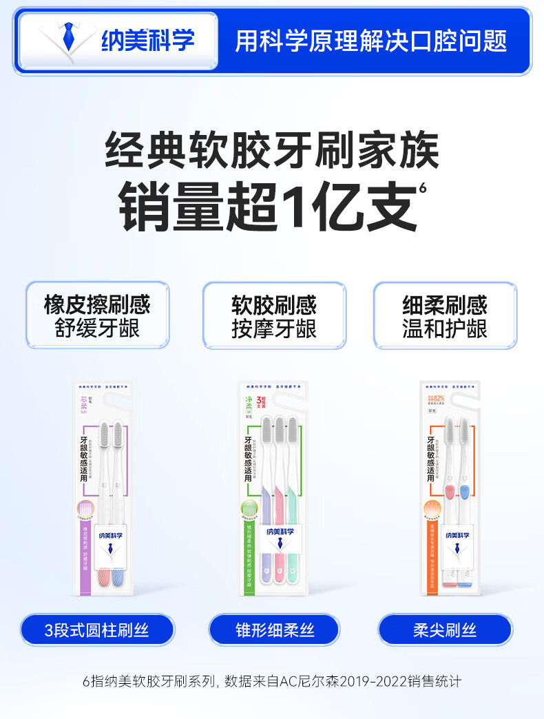 纳美(Namei)纳米抗菌软胶牙刷 温和洁齿呵护牙龈 6支家庭装国货老牌 软毛护龈
