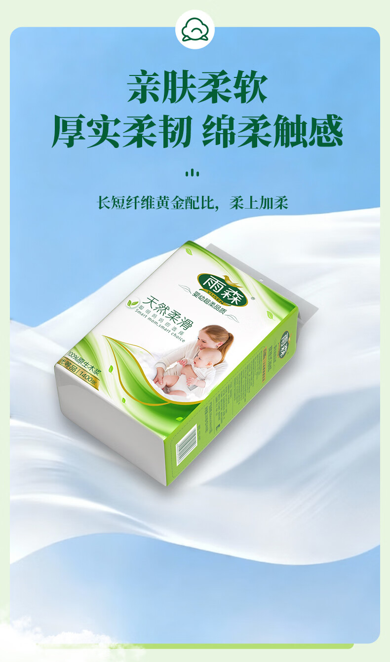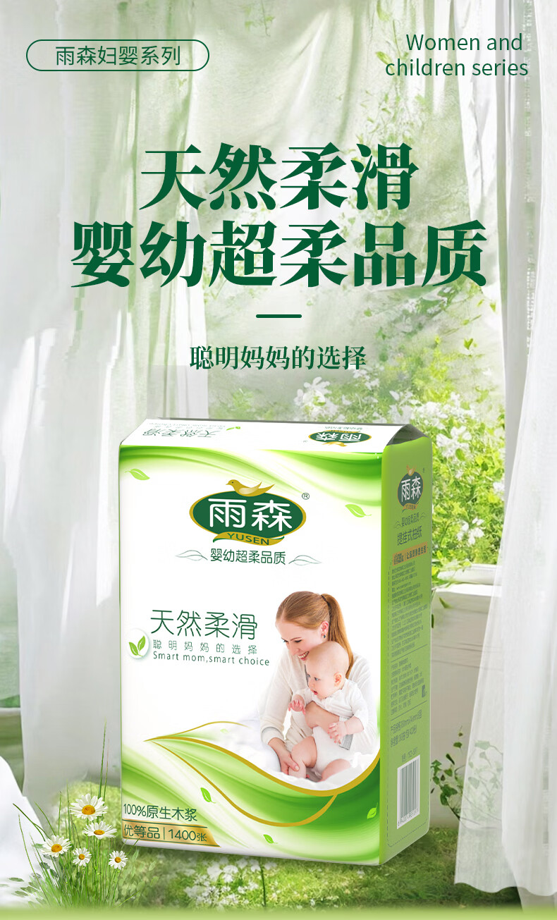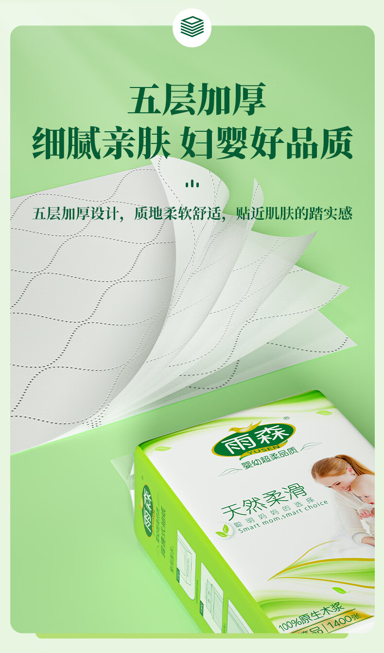 雨森妇婴悬挂式抽纸巾5层加厚天然柔滑婴儿适用超大尺寸纸巾 5层 1400张*6提