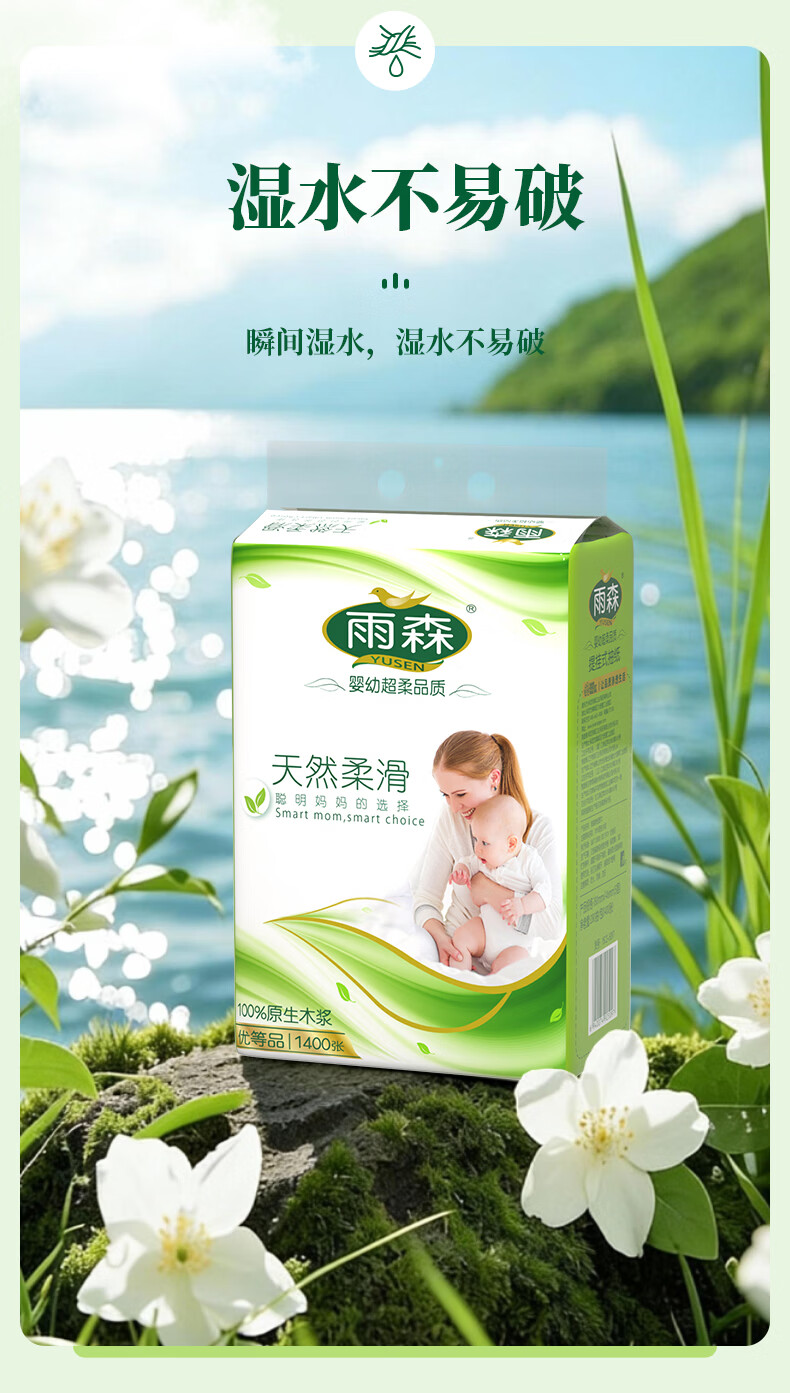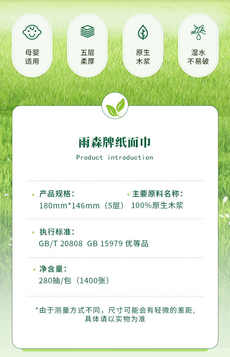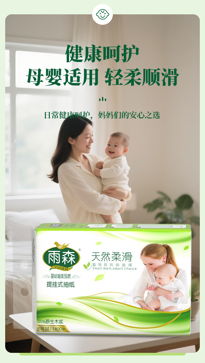 雨森妇婴悬挂式抽纸巾5层加厚天然柔滑婴儿适用超大尺寸纸巾 5层 1400张*6提