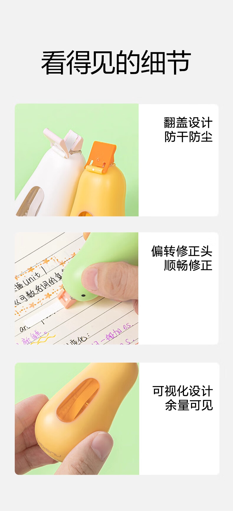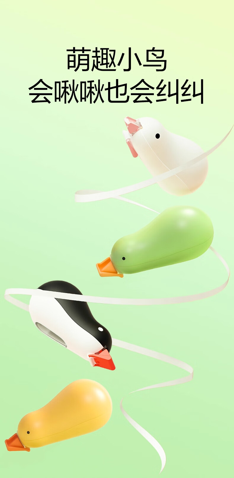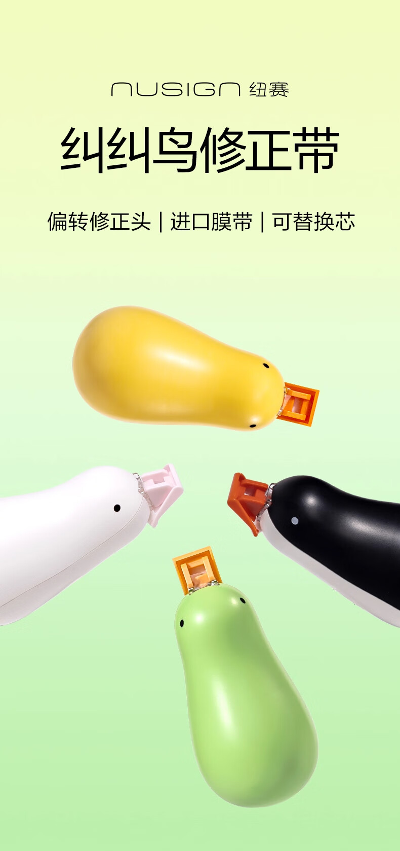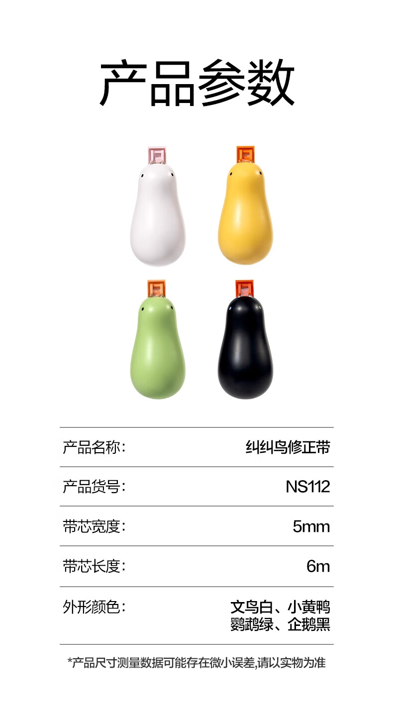 得力纽赛修正带6m小学初中生用高颜值涂改带耐摔顺滑改正带修改带去字无痕改错带纠纠鸟涂改液 小黄鸭【1个本体】共6米 无规格