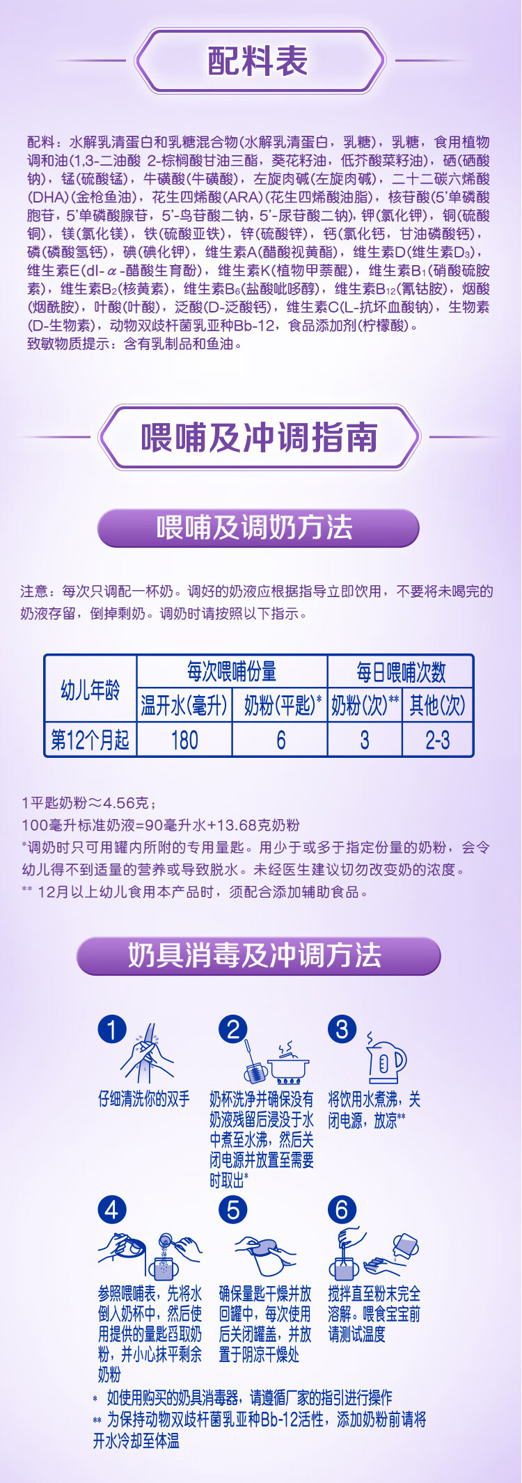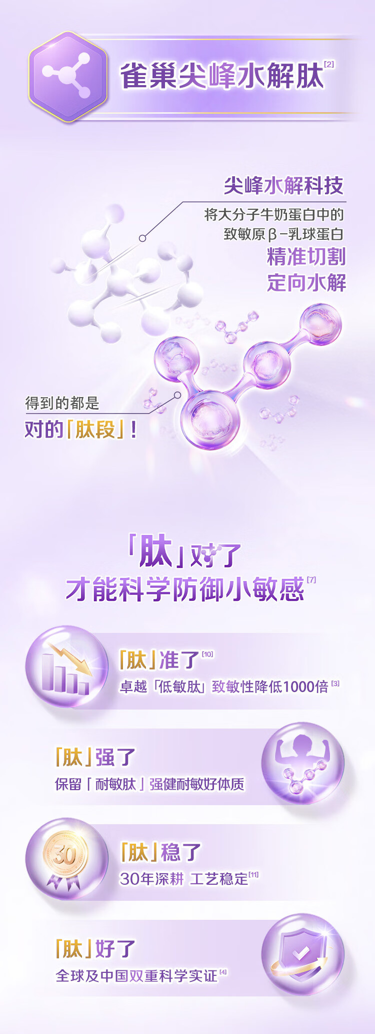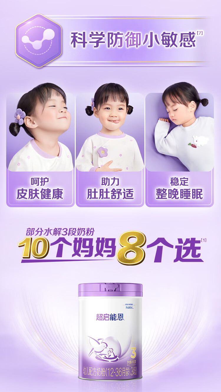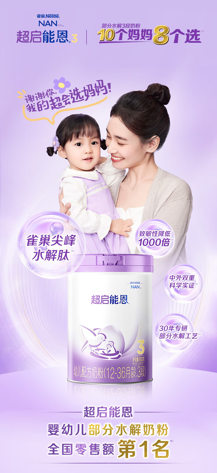 雀巢【加量装】超启能恩3段适度水解配方奶粉3倍DHA12-36月850g*6罐
