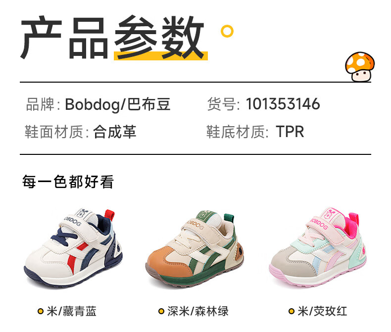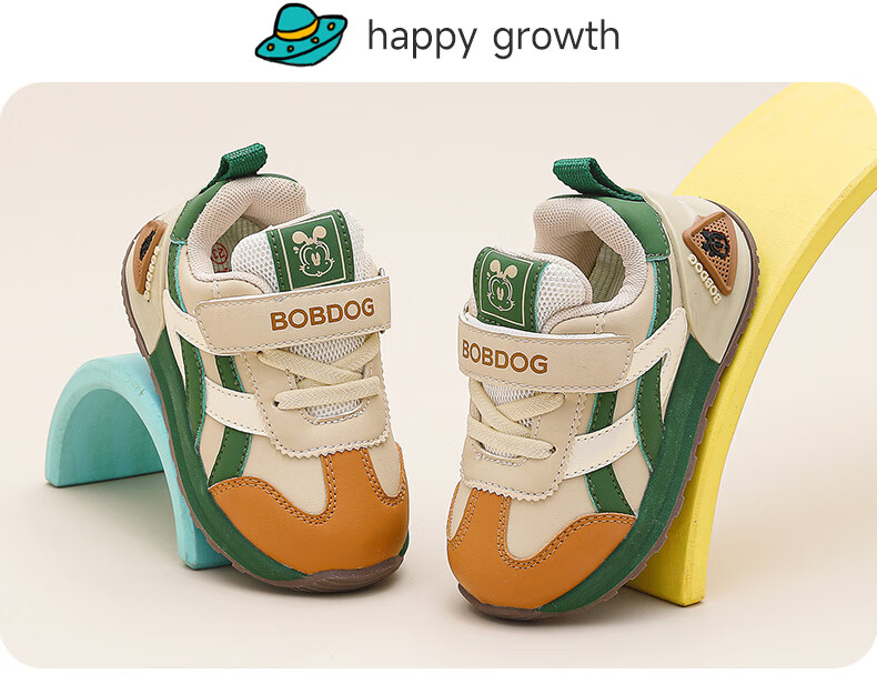 巴布豆童鞋儿童宝宝鞋2025新款秋季一岁男童软底幼童鞋男宝学步鞋 深米/森林绿 29 适合脚长17.2CM