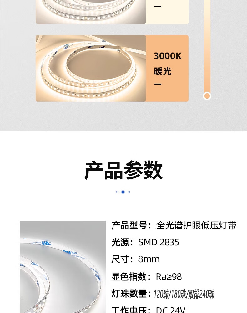 DENGZX灯带led灯条180珠240珠全光谱护眼灯带led自粘线型灯嵌入式双排灯 全光谱常亮灯带180珠【白光】 10米套装【全光谱Ra98+变压器】