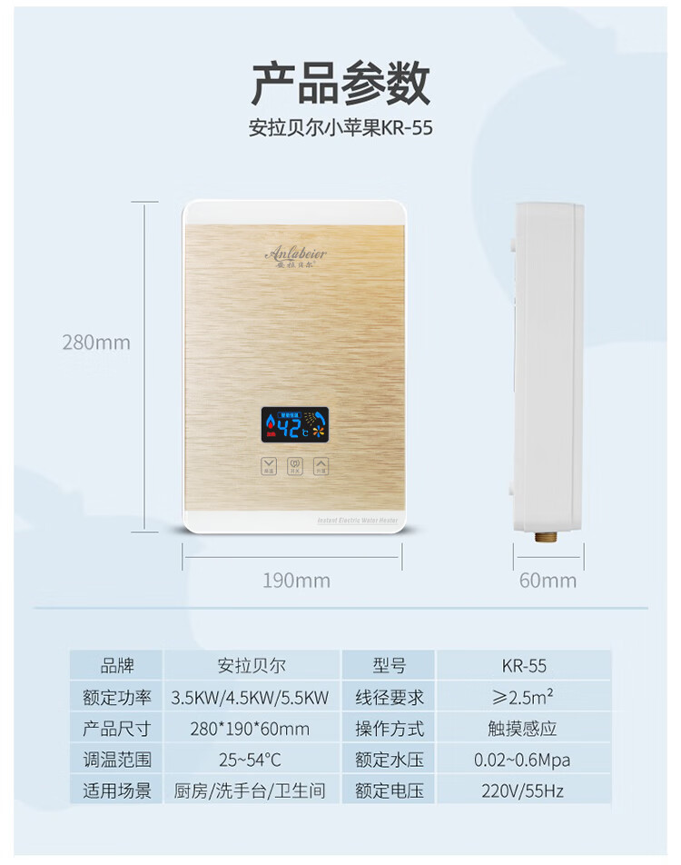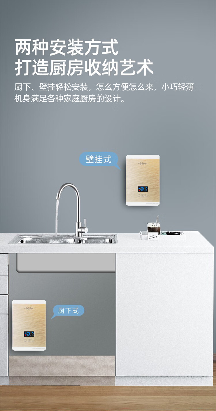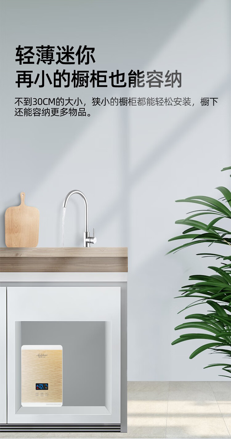 安拉贝尔迷你小厨宝即热式电热水器家用快速热厨房宝上下出水小型热水宝 5500W 白色恒温(360°任意安装)包安装