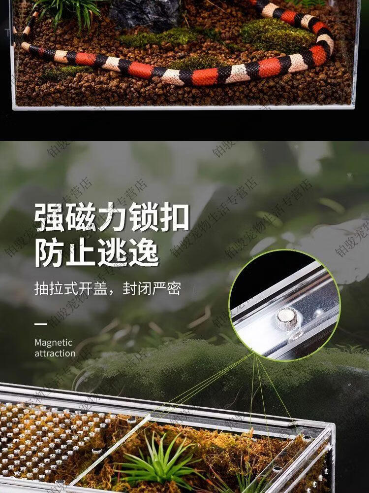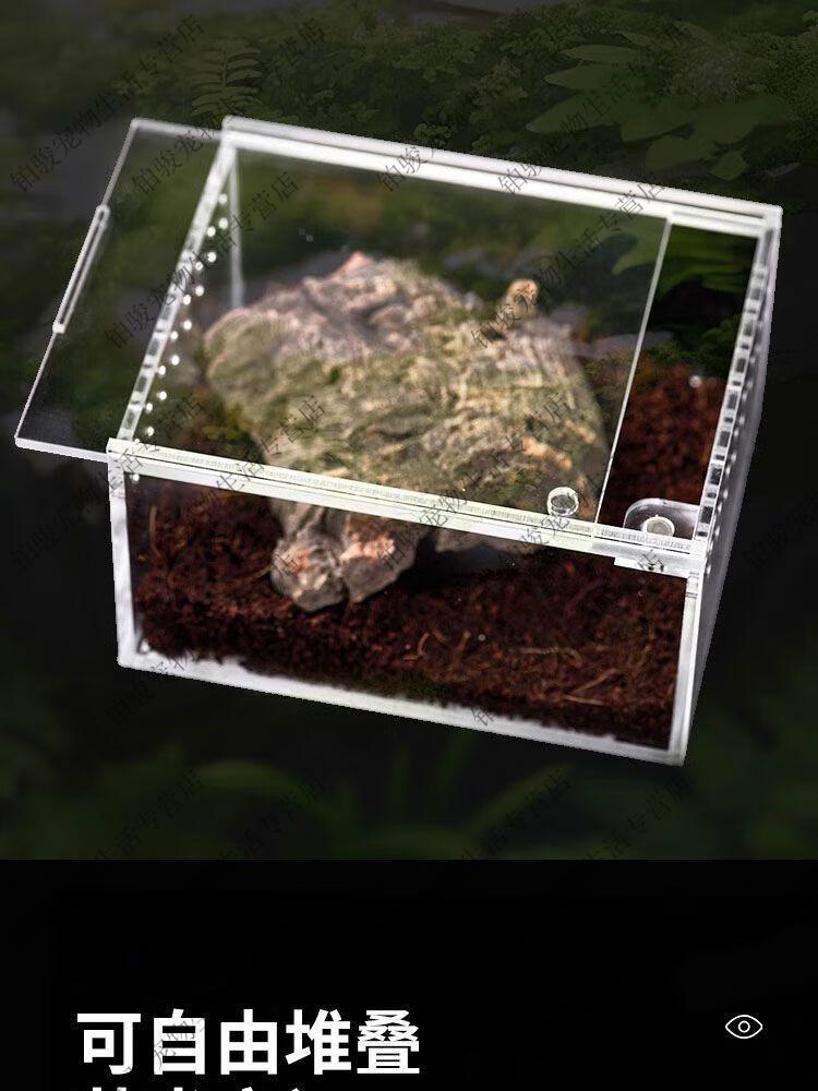爬宠饲养盒透明亚克力一体免组装寄居蟹饲养缸蝎子蛇昆虫生态箱 小号磁吸开关10*8*7