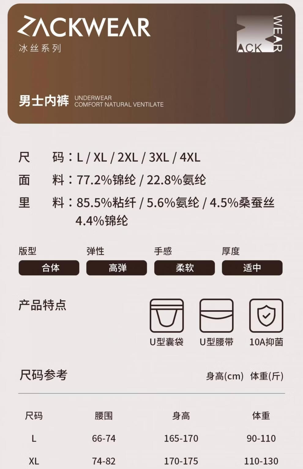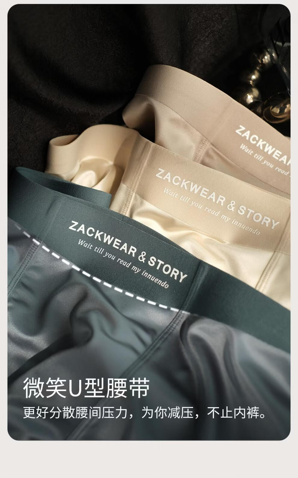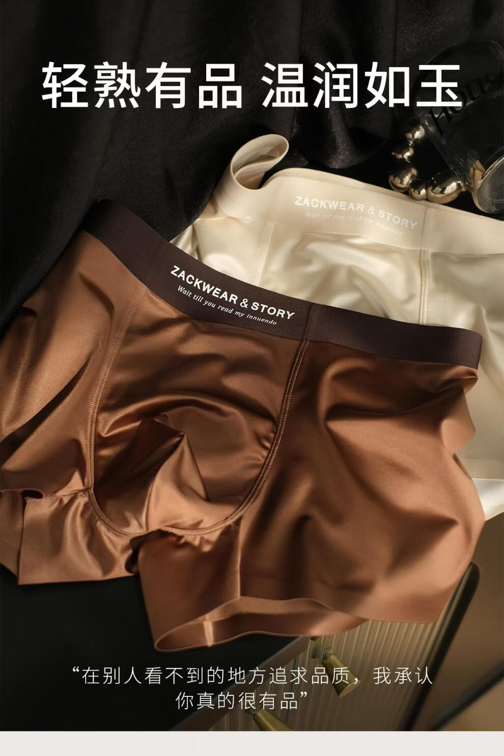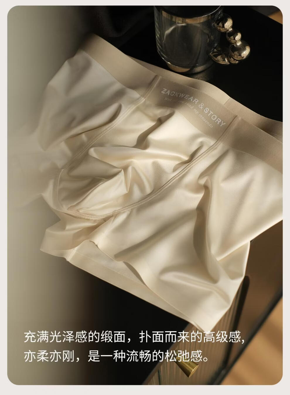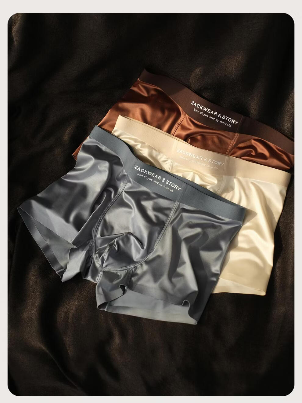 Zackwear轻奢缎面男士冰 丝内裤桑蚕 丝内裆裸感男生四角平角裤父亲礼 月夜蓝+浣纱白+银竹灰 4XL 170-200斤