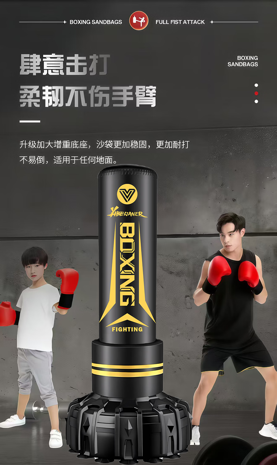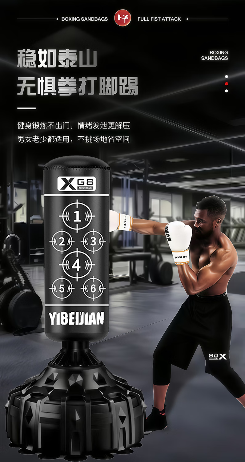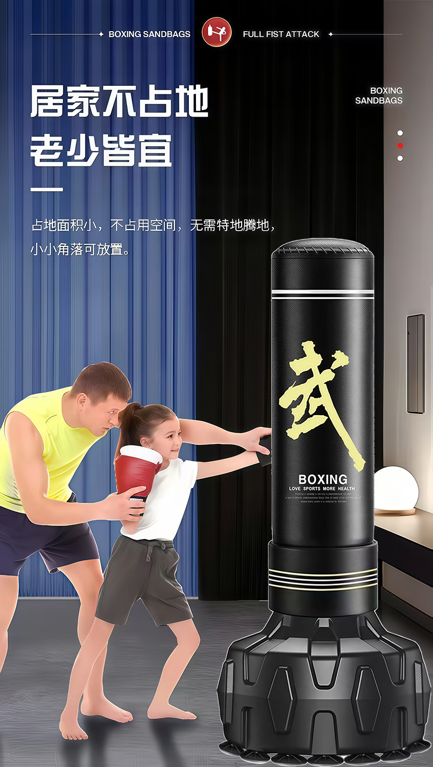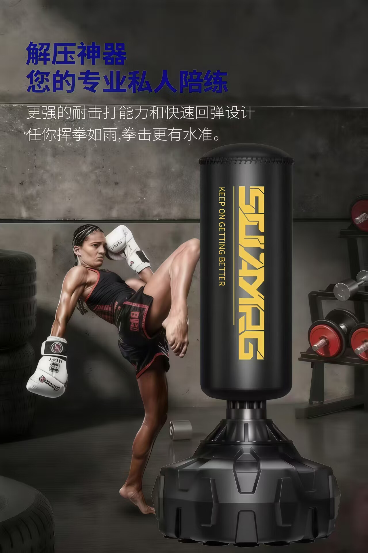 亿倍健拳击沙袋散打立式家用成人拳击沙包不倒翁儿童跆拳道拳击训练器材 1.7米红黑款(加厚装甲桶)