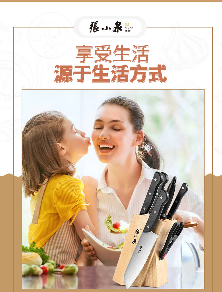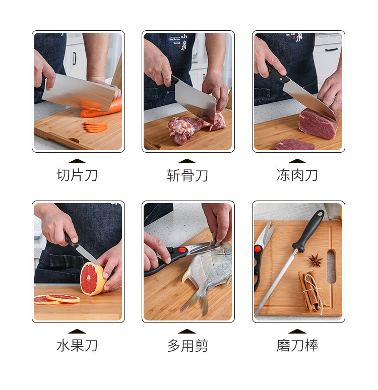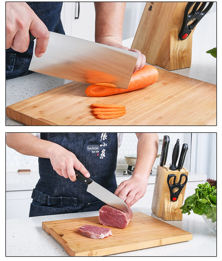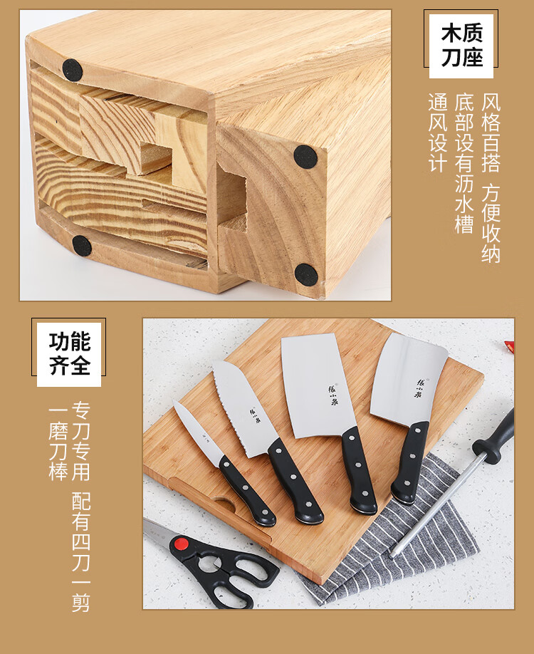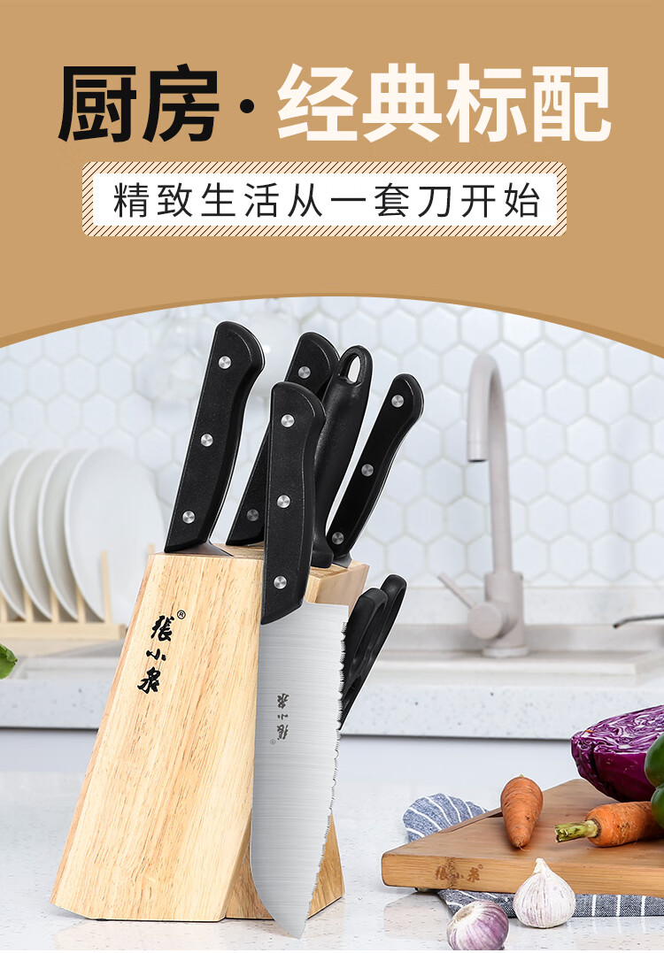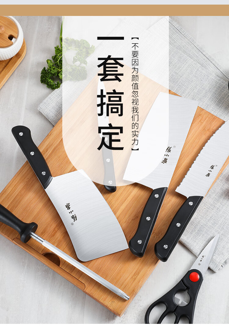 张小泉不锈钢刀具切片刀斩骨刀冻肉刀厨房剪磨刀棒七件套刀具套装厨房