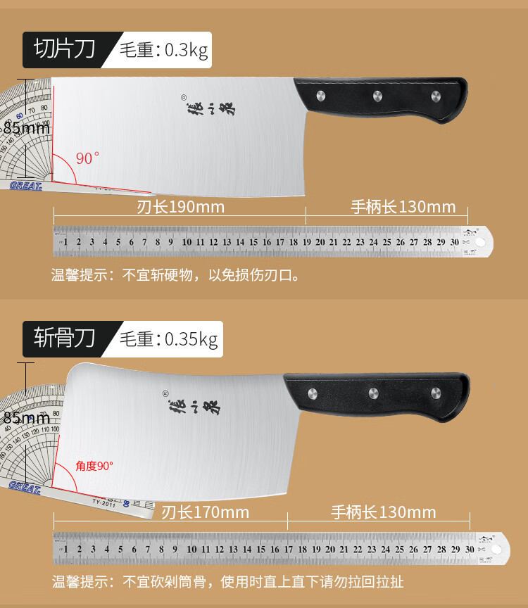 张小泉 刀具 单锋系列家用不锈钢菜刀 切菜刀 片肉刀 厨用刀具 斩骨刀