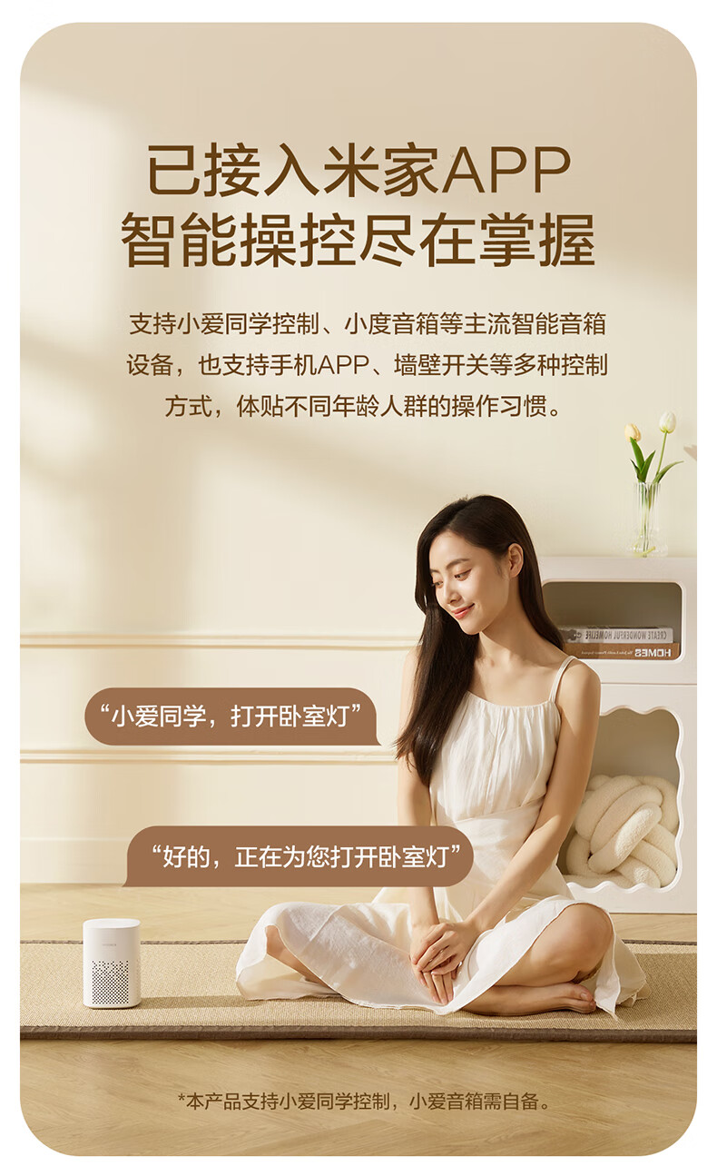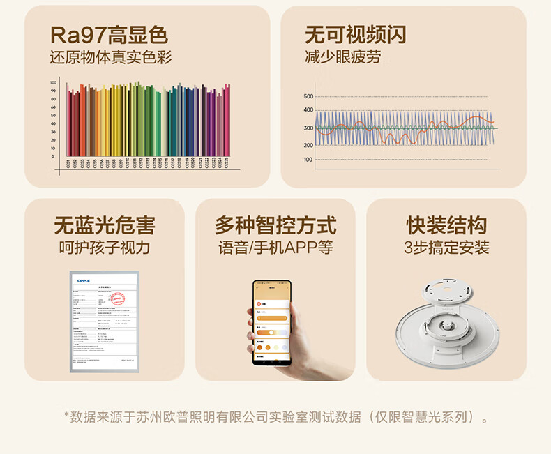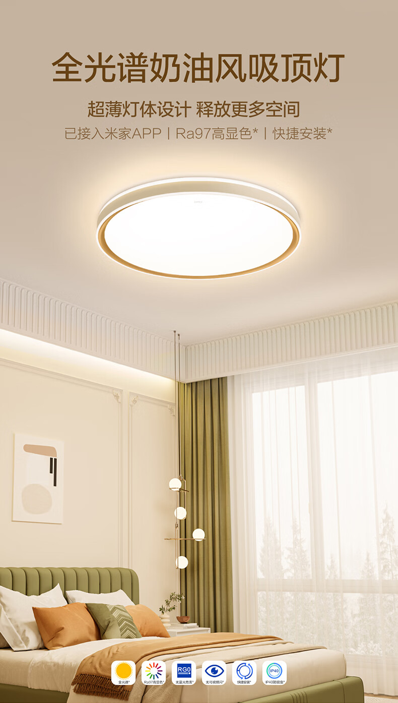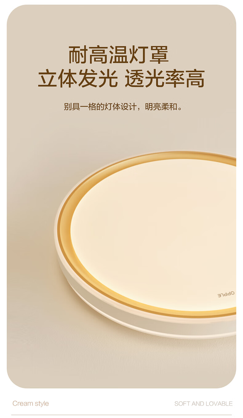 欧普照明(OPPLE)吸顶灯卧室灯奶油风简约全光谱护眼智控调光LED照明品见4 包安装