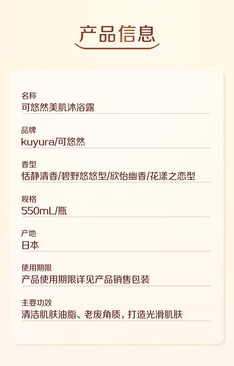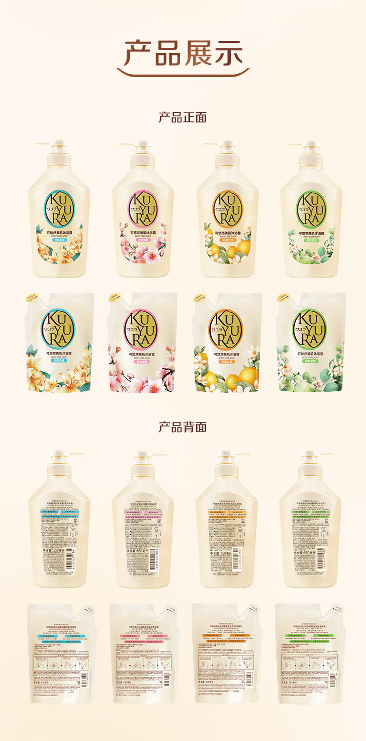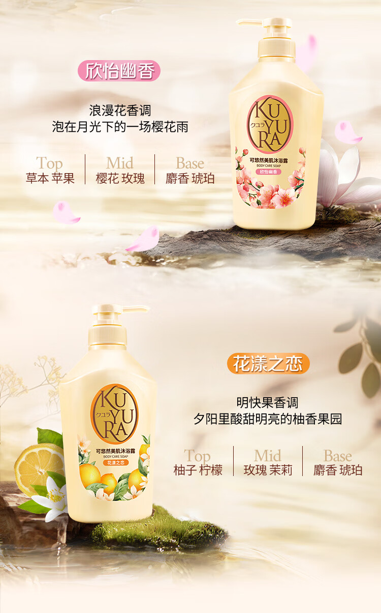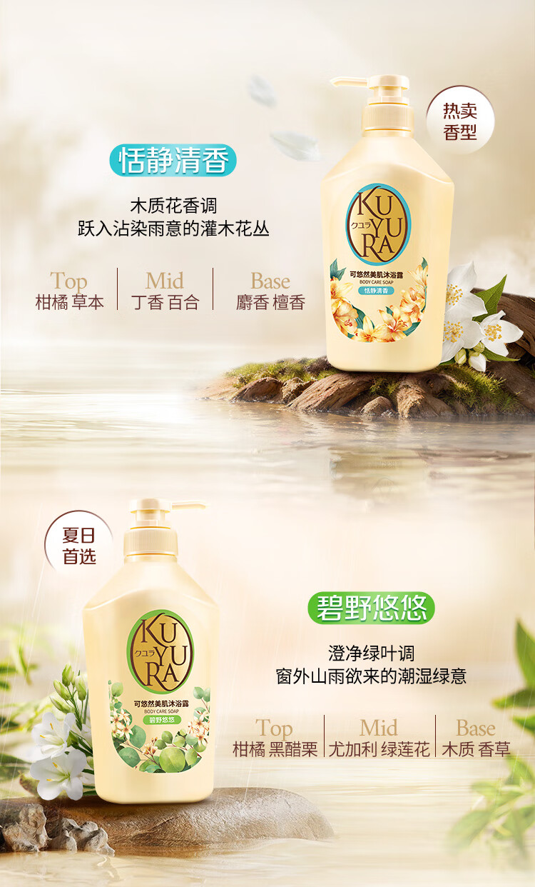 可悠然沐浴露大黄瓶550ml 美肌香氛持久留香滋润保湿恬静清香男女士专用