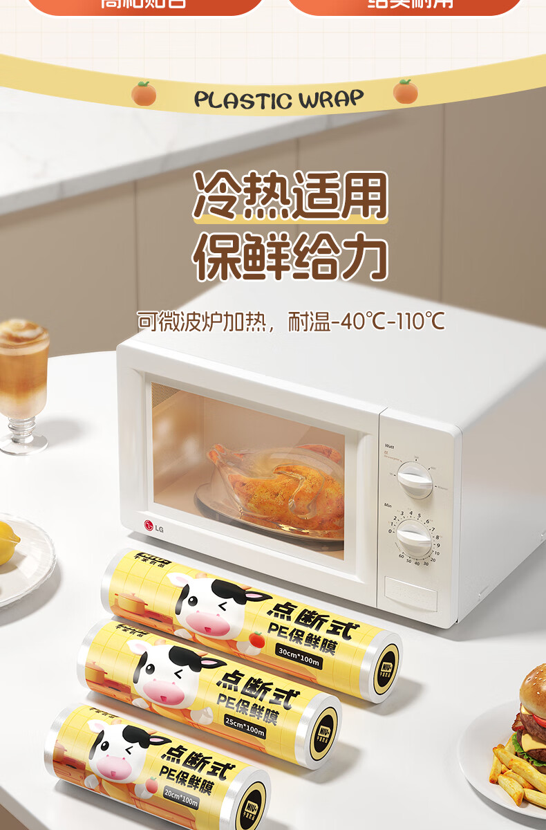 牛家优品 保鲜膜 点断式大号 100米×30cm 食品级 耐高温 微波炉冰箱适用