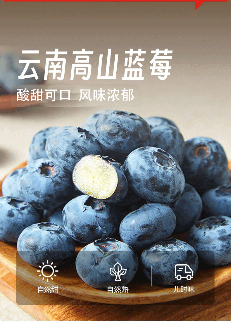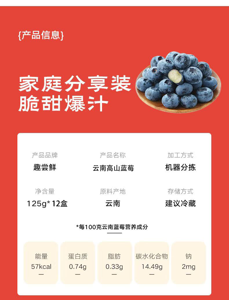 趣尝鲜云南高原应季花香蓝莓6盒装125g/盒 单果15mm+ 源头直发 一件包邮