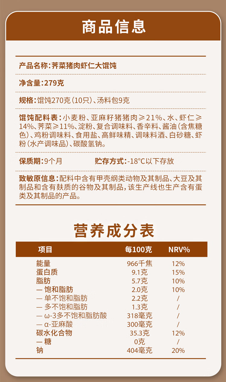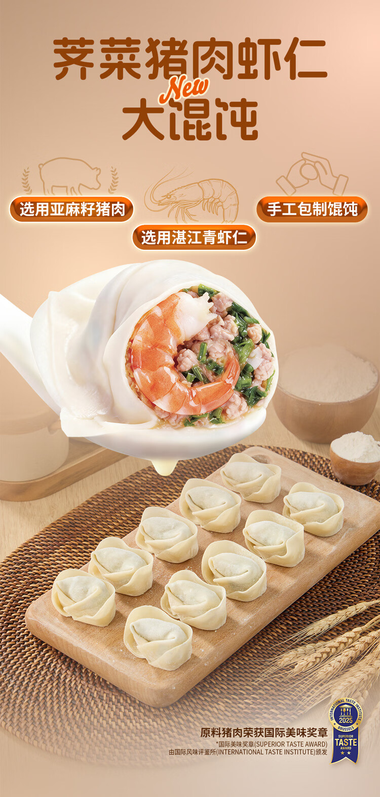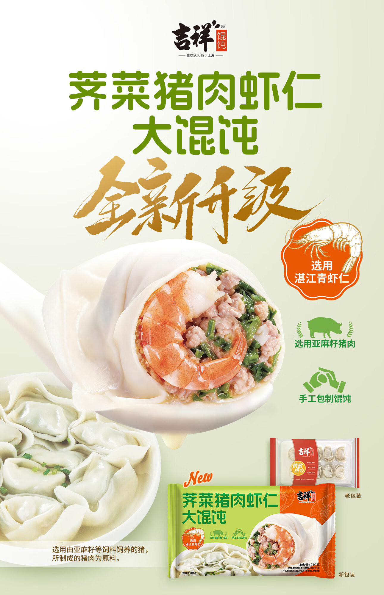 吉祥荠菜虾仁大馄饨生鲜水饺云吞饺子混沌速冻食品279g/袋共10只