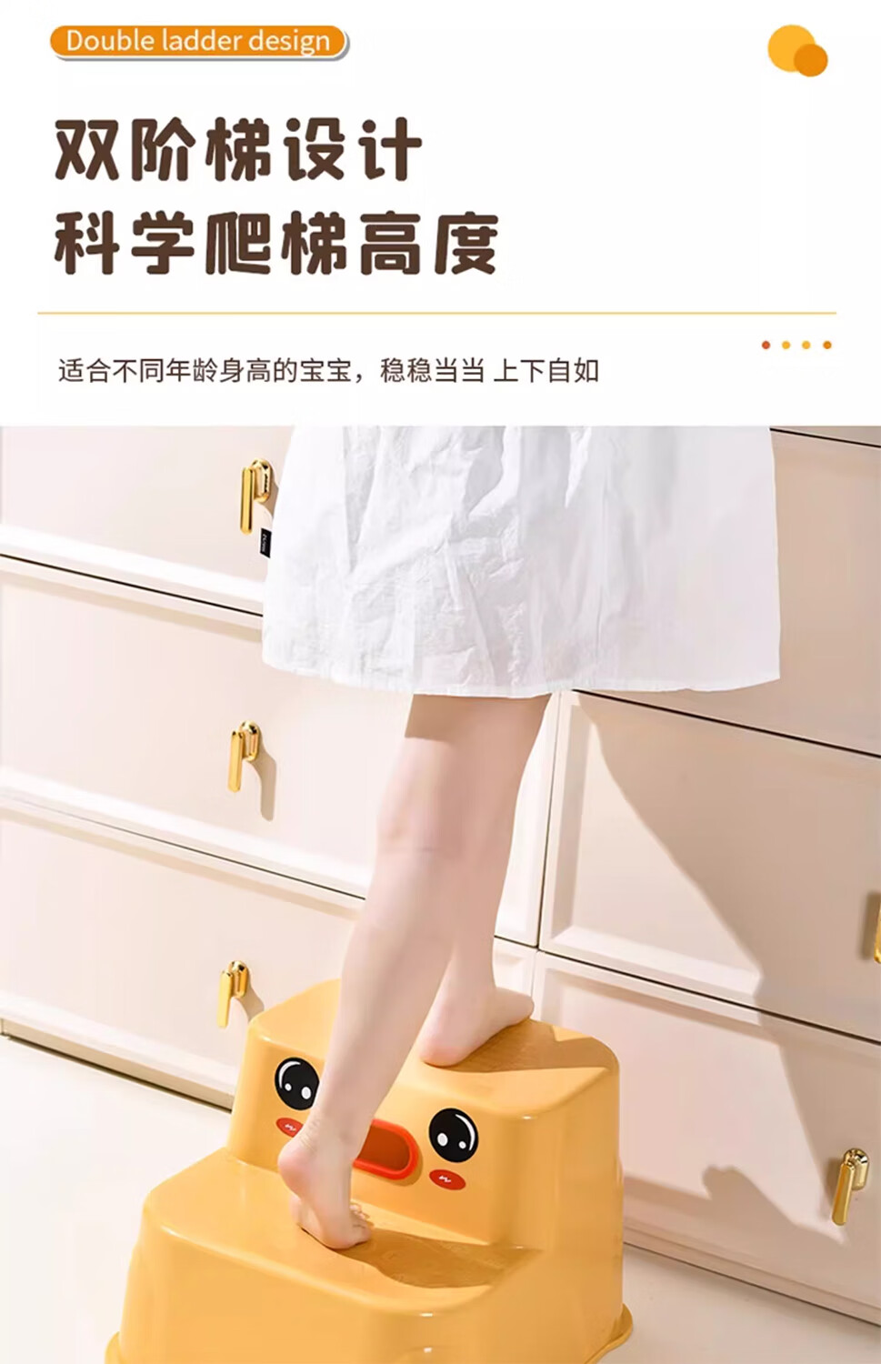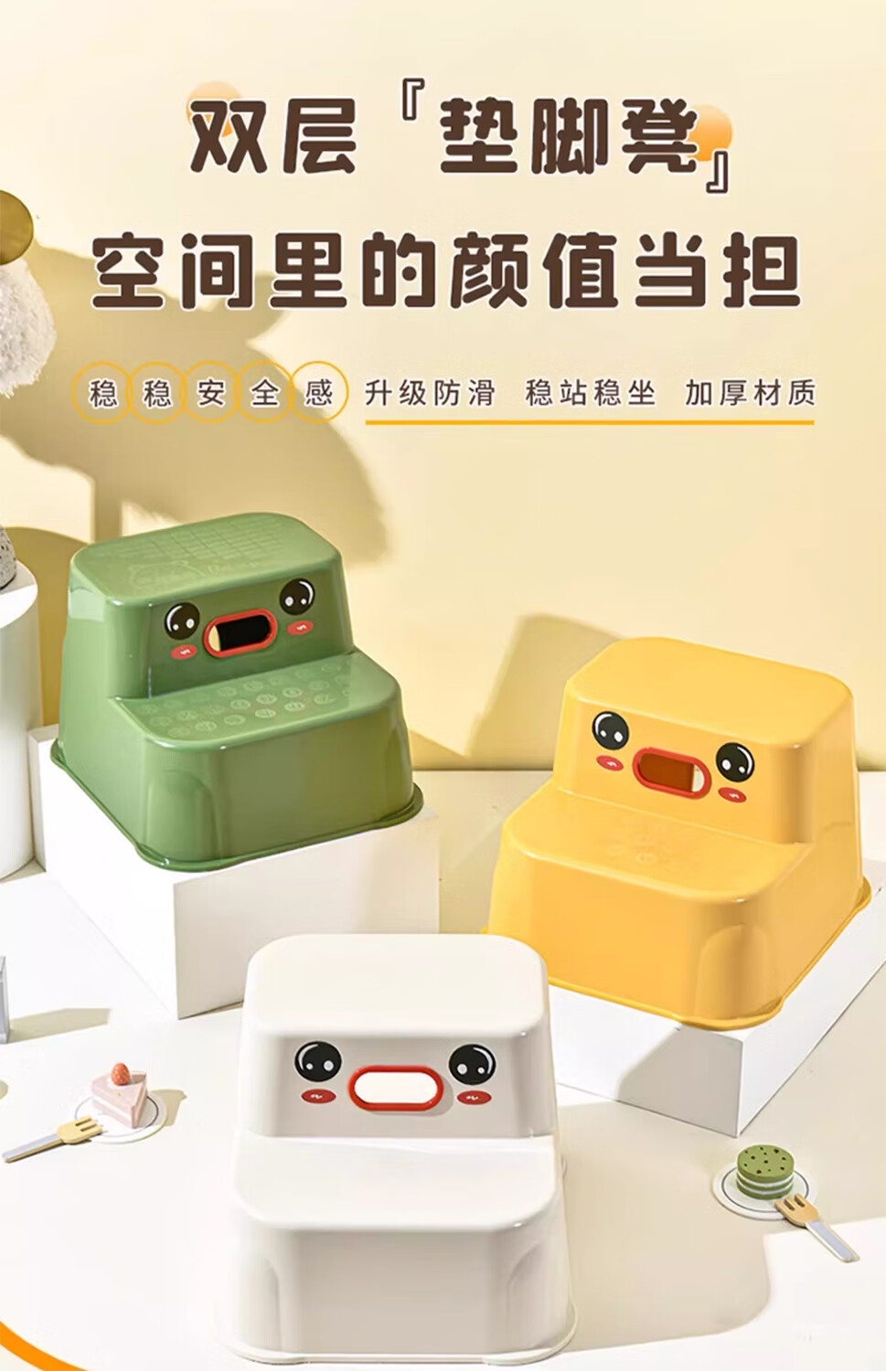 木格格儿童垫脚凳家用双层防滑宝宝洗手台洗漱阶梯凳刷牙洗脸马桶脚踏凳 奶油白【升级防滑】