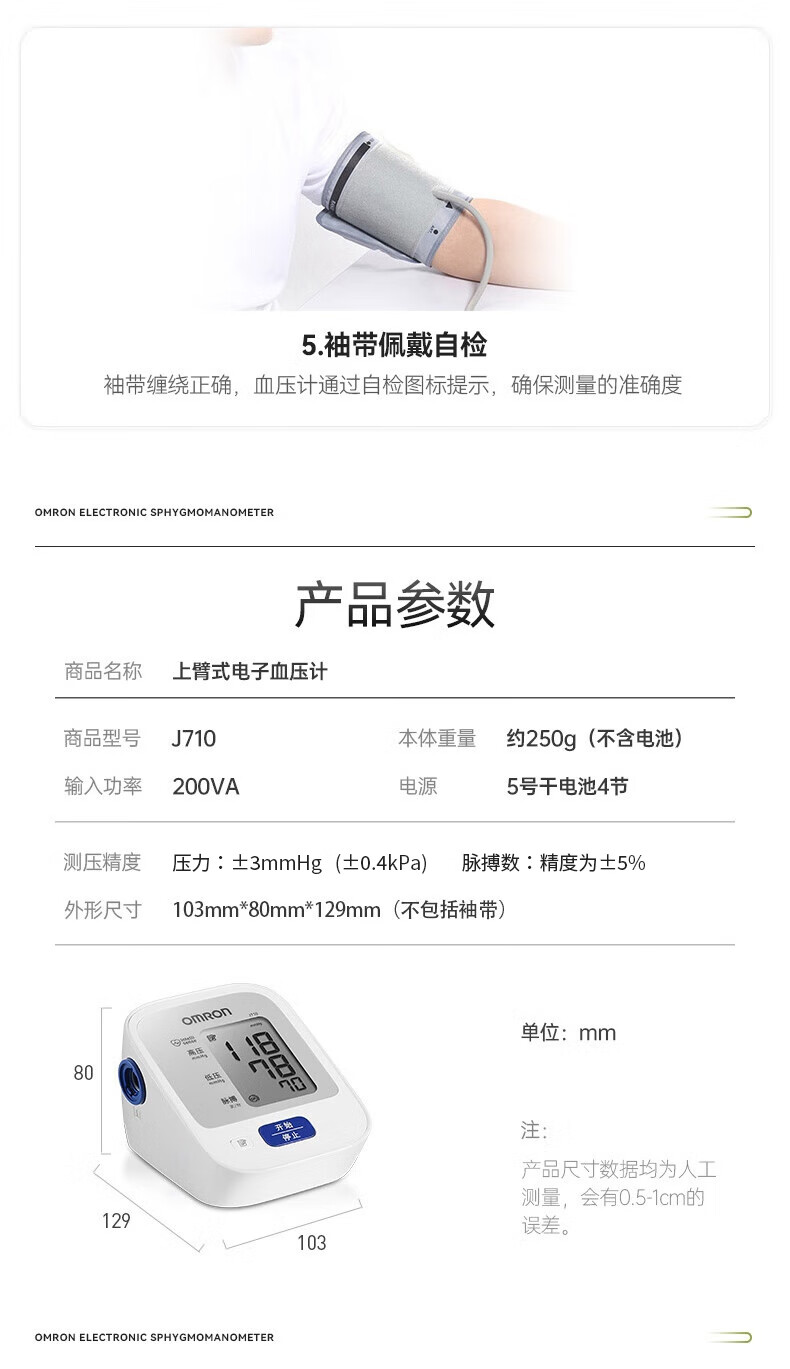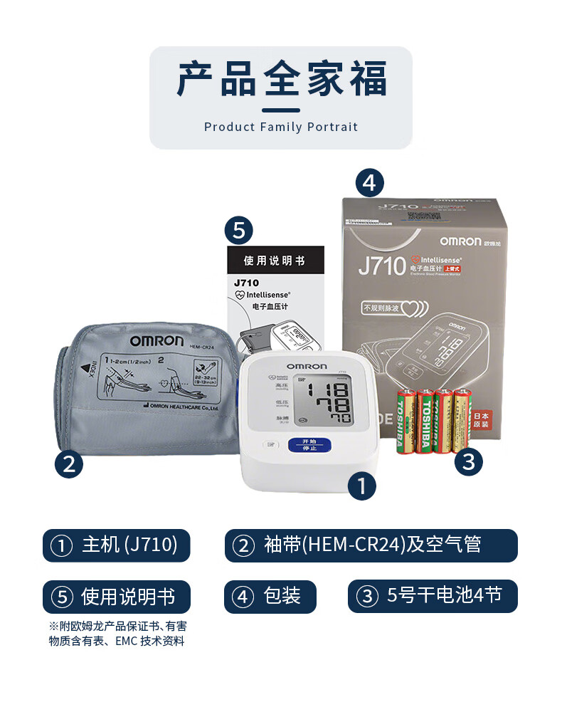 欧姆龙(OMRON)原装进口 电子血压计血压仪家用医用高精准 老人J710 年货