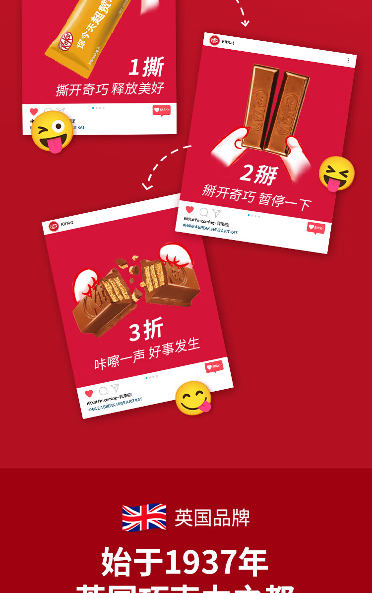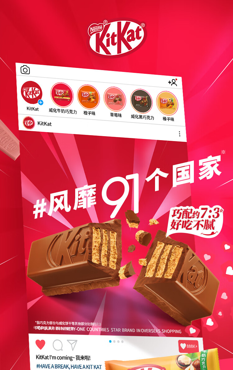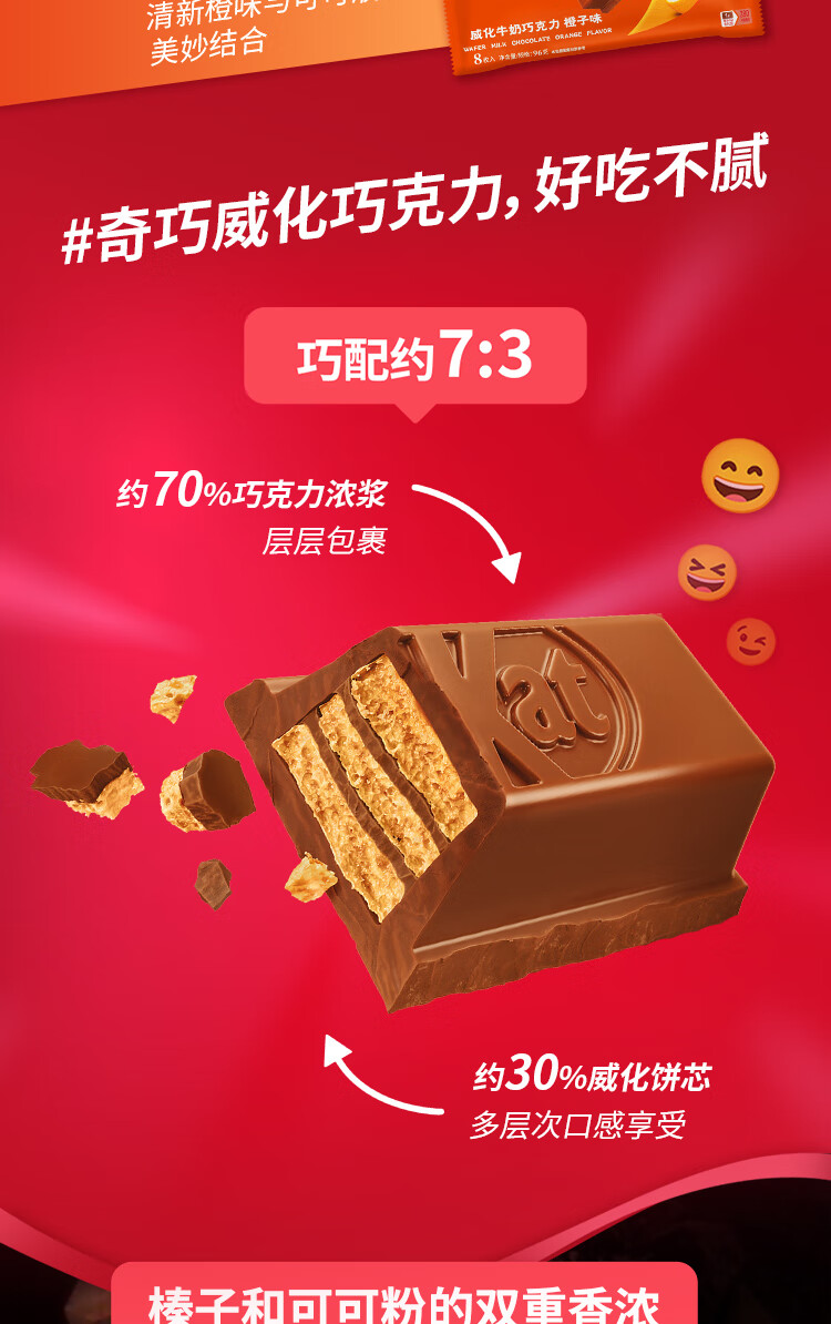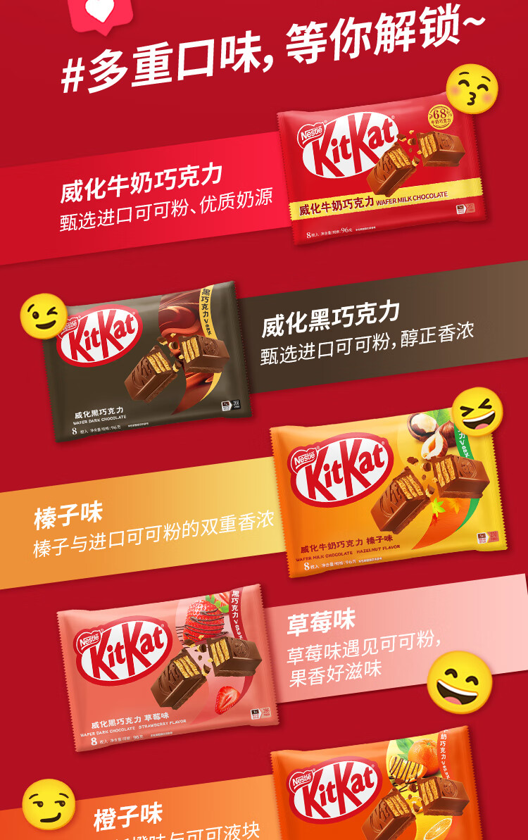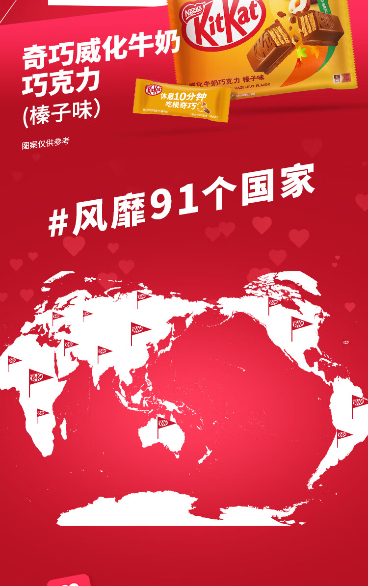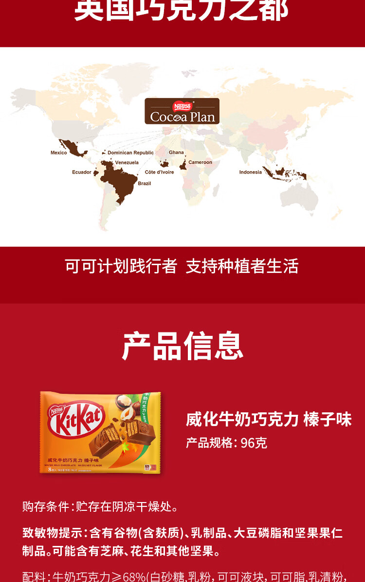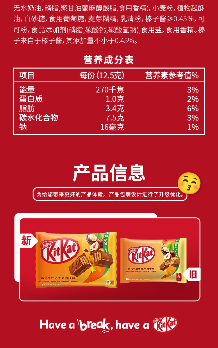 雀巢 奇巧kitkat 威化牛奶巧克力 榛子味 96g(8枚) 休闲零食 礼物