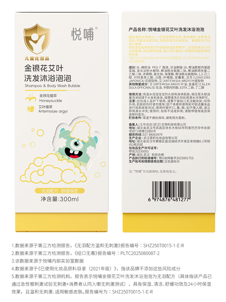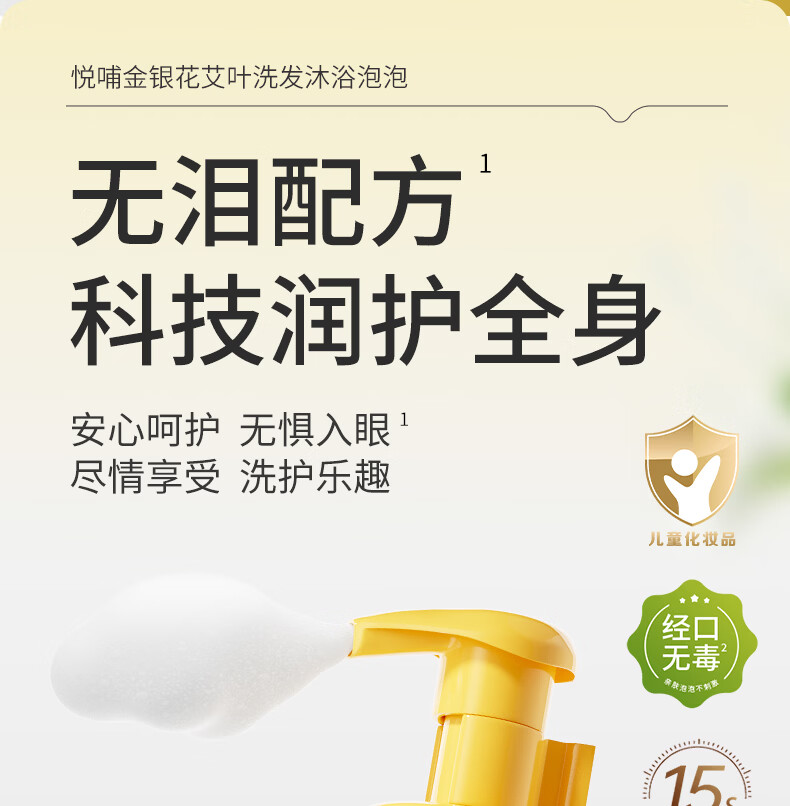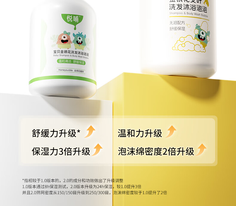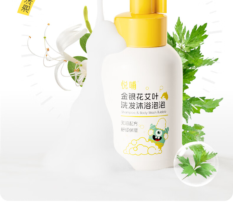 悦哺婴儿洗发水沐浴露二合一 宝宝金银花沐浴露 新生幼儿泡泡沐浴乳 【低泡易洗】洗沐二合一300ml