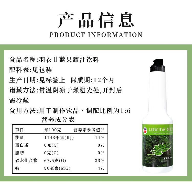 美意颂羽衣甘蓝果蔬汁饮料奶茶店专用原叶果蔬液体沙拉商用混合果汁 珍珠果果味酱1kg