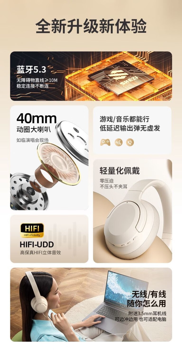 拜硕【柏林之声丨2026最新款】头戴式主动降噪无线音乐高音质舒适降噪电竞游戏有线电脑带麦PC蓝牙耳机 暗夜黑+顶配蓝牙5.4+HiFi音质 9D音效+ENC物理降噪+蓝牙/有线双模式