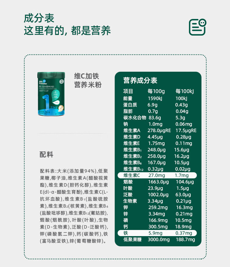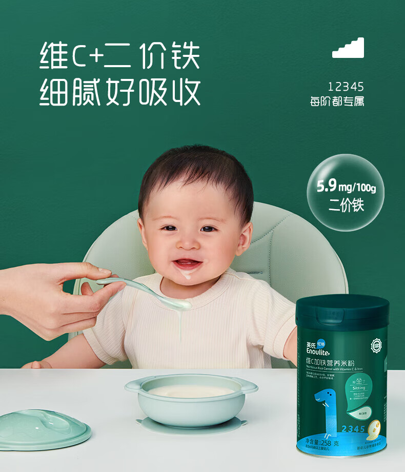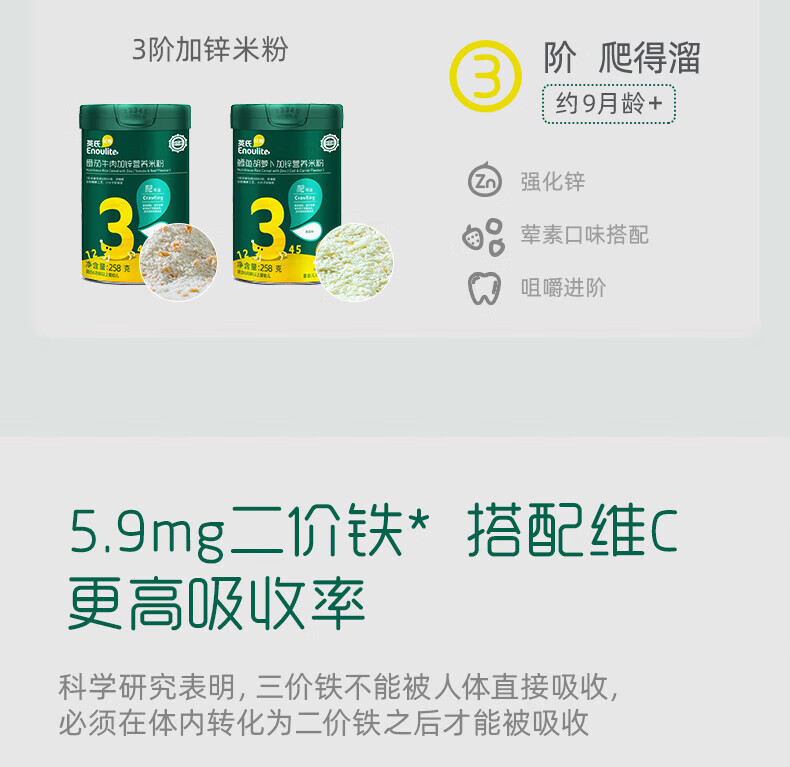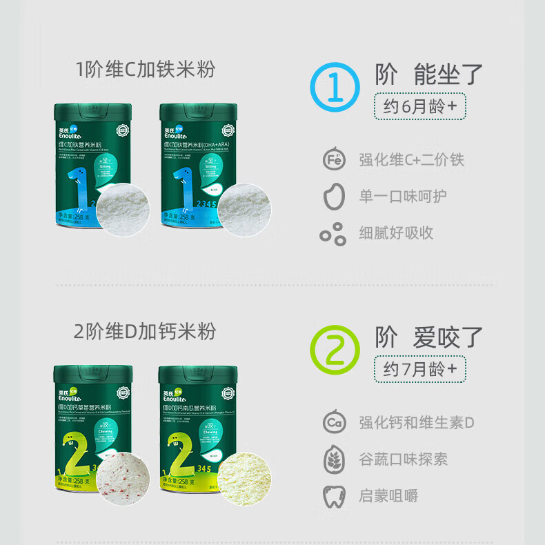 英氏婴幼儿高铁米粉维C加铁多乐能宝宝辅食英式加铁营养米糊 2阶胡萝卜加钙 258g*1罐