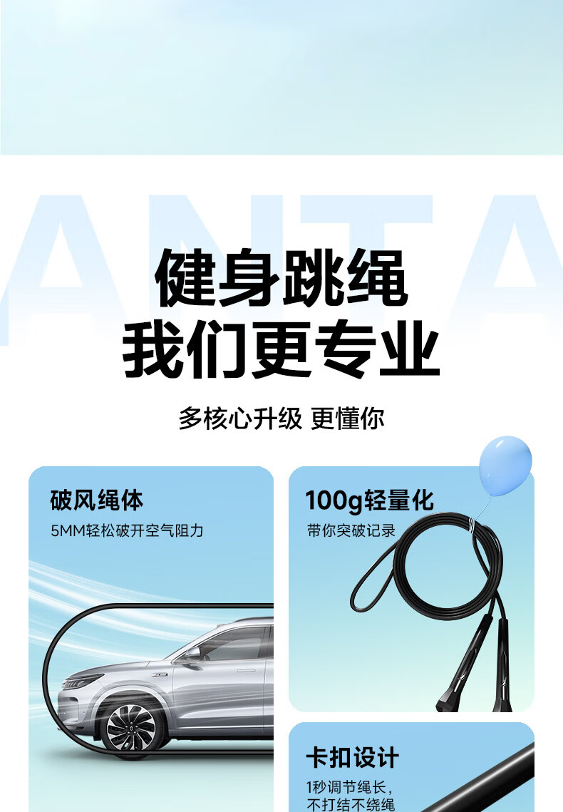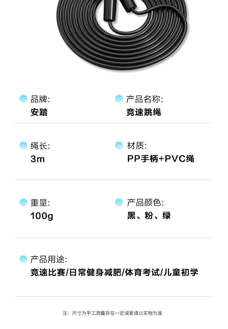 ANTA安踏可调节竞速跳绳小学生健身专用轻便中考体育考试比赛专业训练 曜石黑