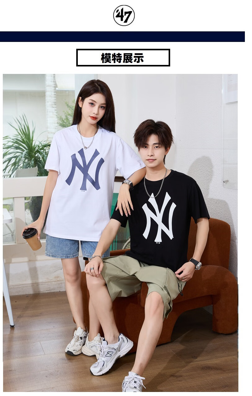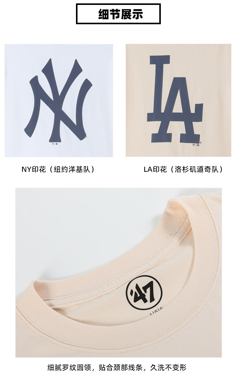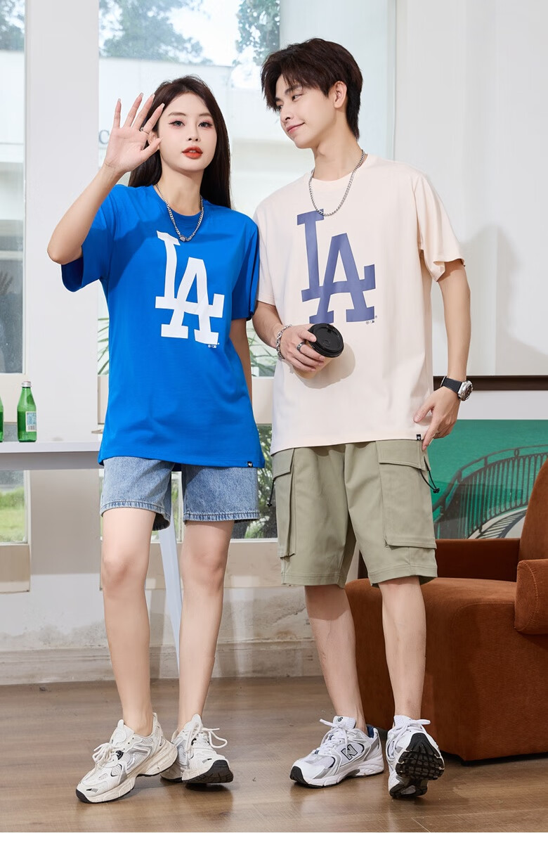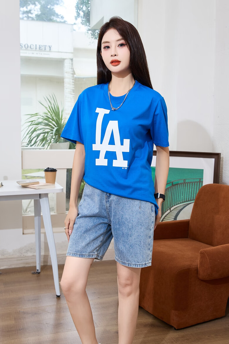 47美国棒球联盟短袖T恤纯棉面料时尚t恤胸前印花NY/LA 男女情侣 宝蓝色(胸前印花LA) XL (身高175-185cm,体重80-95kg)