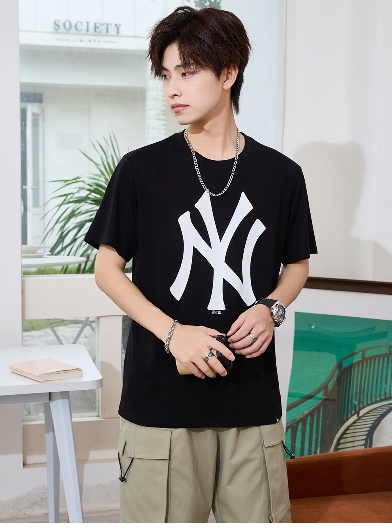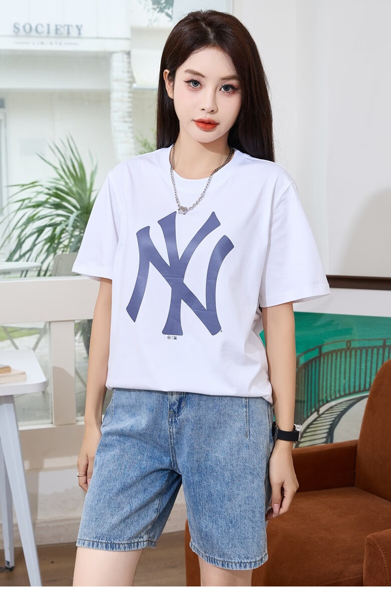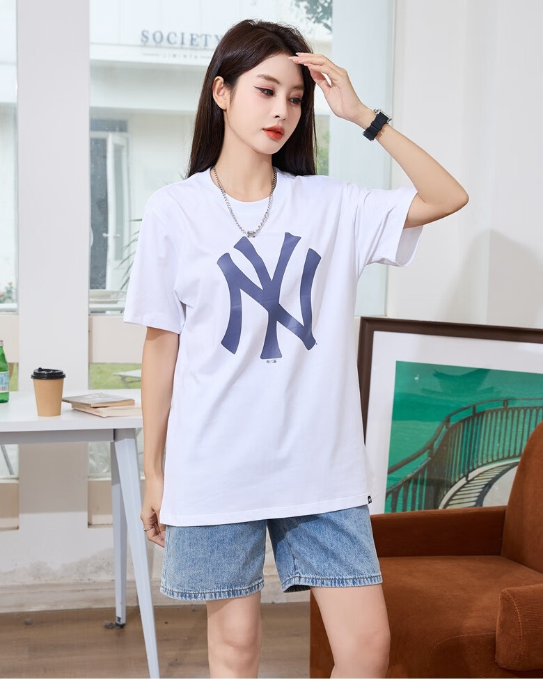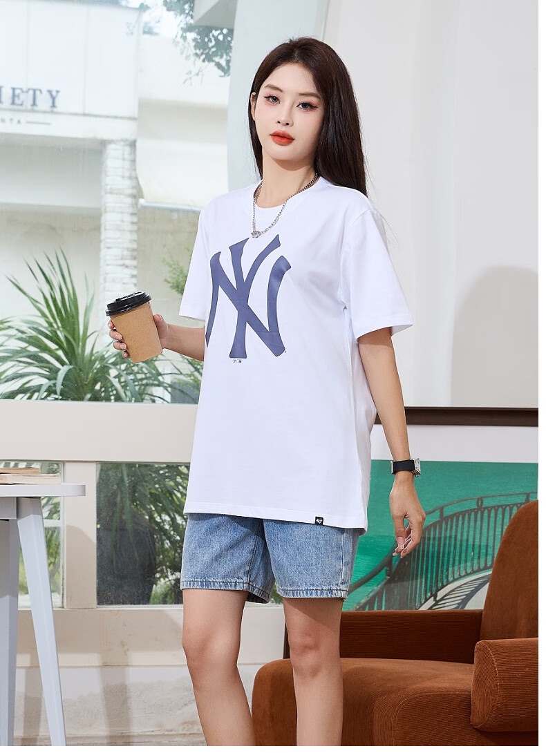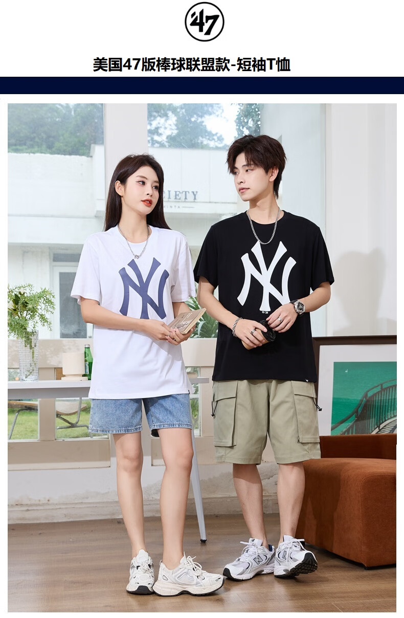 47美国棒球联盟短袖T恤纯棉面料时尚t恤胸前印花NY/LA 男女情侣 宝蓝色(胸前印花LA) XL (身高175-185cm,体重80-95kg)